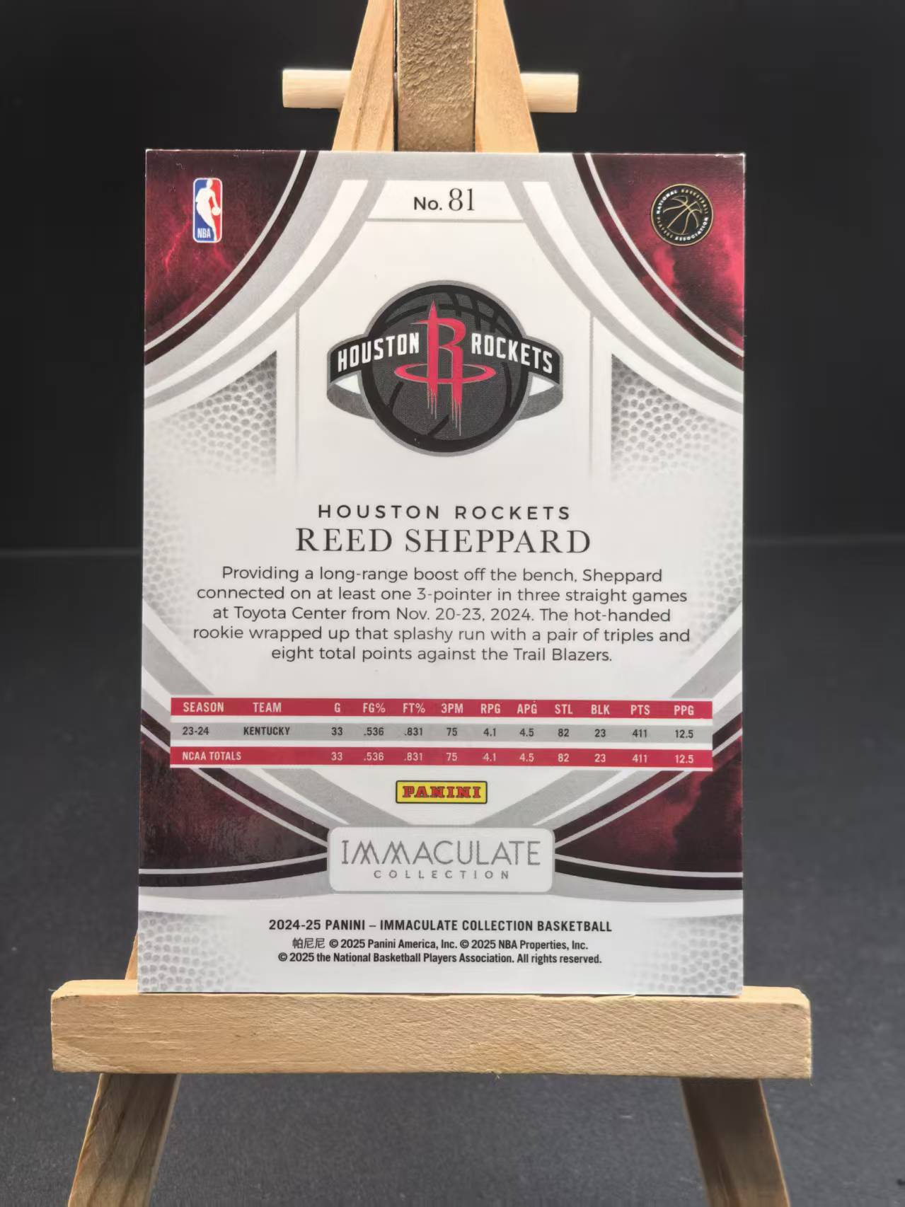 2024-25 Panini Immaculate Reed Sheppard RC 舟 爱咪咪 火箭 新秀 里德 谢波德 70/99编 base 球皮纹 潜力十足 微白边角120101(鹿