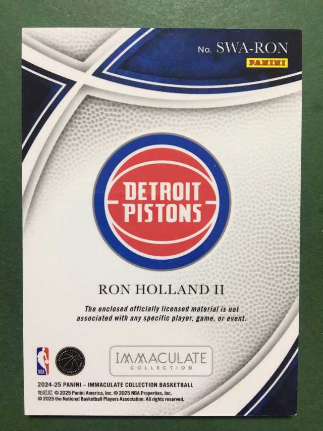 2024-25 Panini Immaculate Ron Holland RC 爱咪咪 新秀 活塞 罗恩 霍兰德二世 99编 双色球衣切割PA 谢泼德 卡斯尔同届 坎宁安队友 未来可期 卡品如图#叔