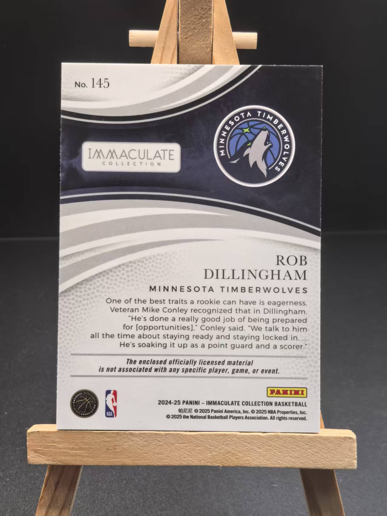2024-25 Panini Immaculate rob dillingham RC 舟 爱咪咪 森林狼 新秀 罗伯特·迪林厄姆 99编 PATCH 暴力球衣 潜力十足 微白边角120102(鹿