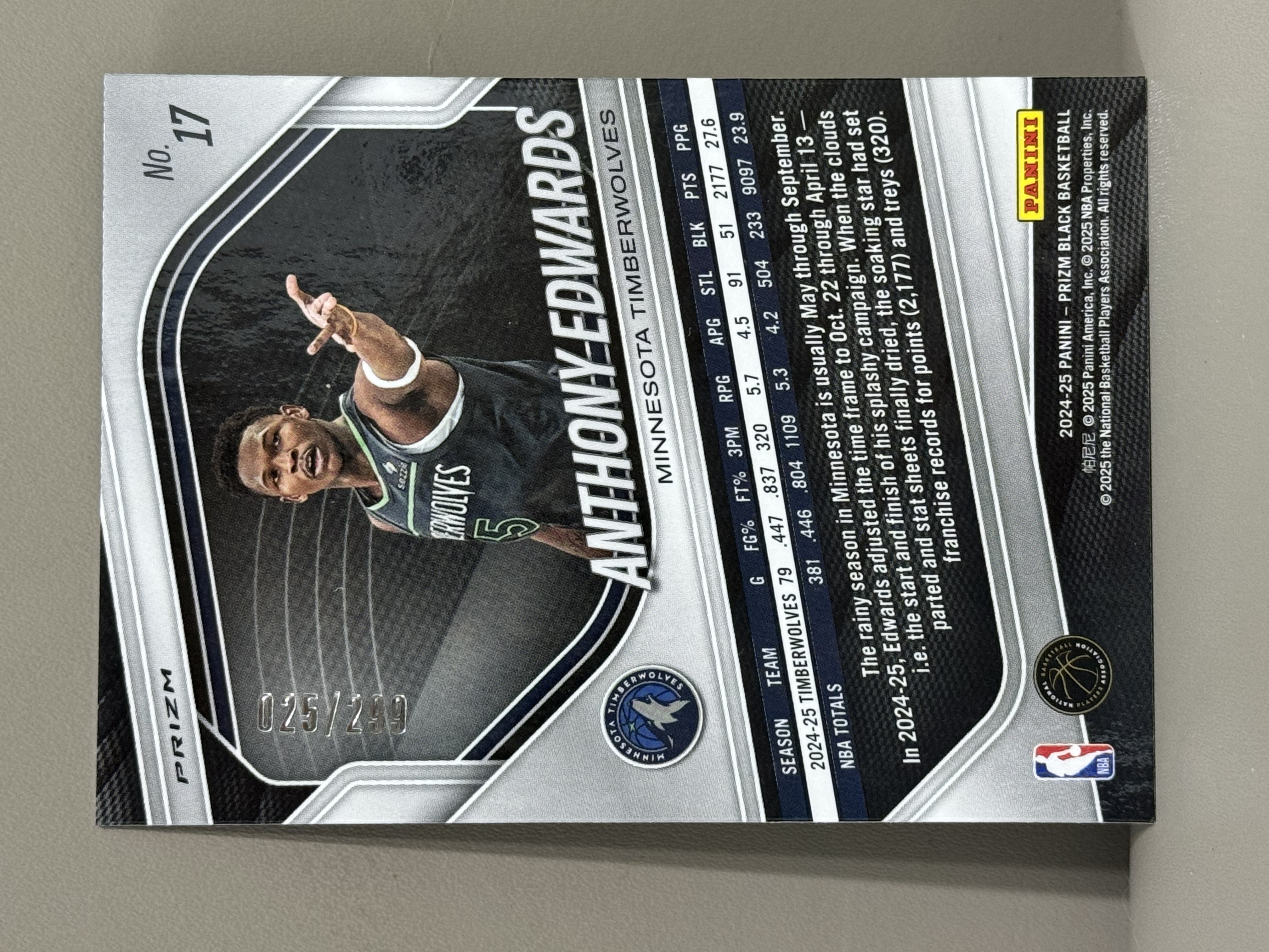 2024-25 Panini Prizm Black Anthony Edwards Pz Black 黑PZ 森林狼 华子 安东尼 爱德华兹 红折 299编 折射 收藏必备 卡品如图 YY