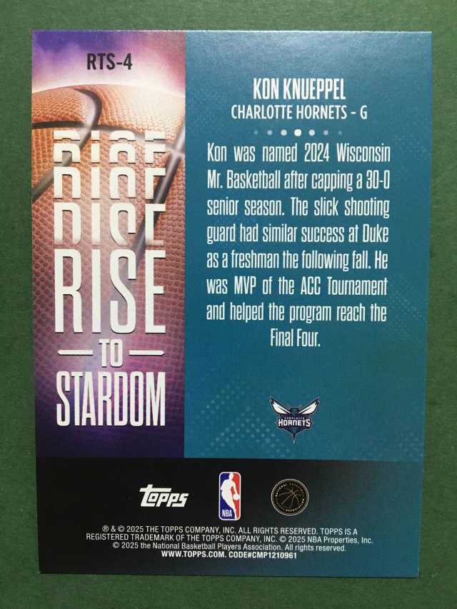 2025 Topps Flagship Kon Knueppel RC 元年 新秀 黄蜂 康克尼普尔 银折 折射 RISE TO STAROOM 特卡 最佳新秀人选之一 弗拉格 vj同届 卡品如图#M