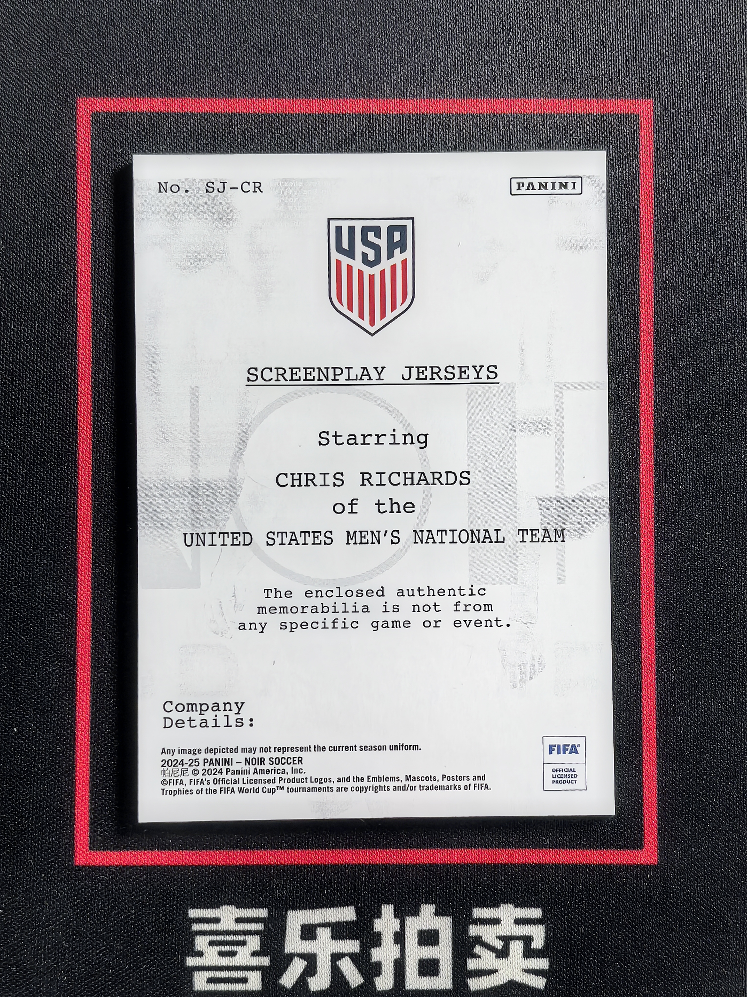 2024-25 Panini Noir Chris Richards 诺尔 FIFA 美国 克里斯 理查兹 22/55编 三窗球衣 物料切割 折射 收藏必备 卡品如图 ltx