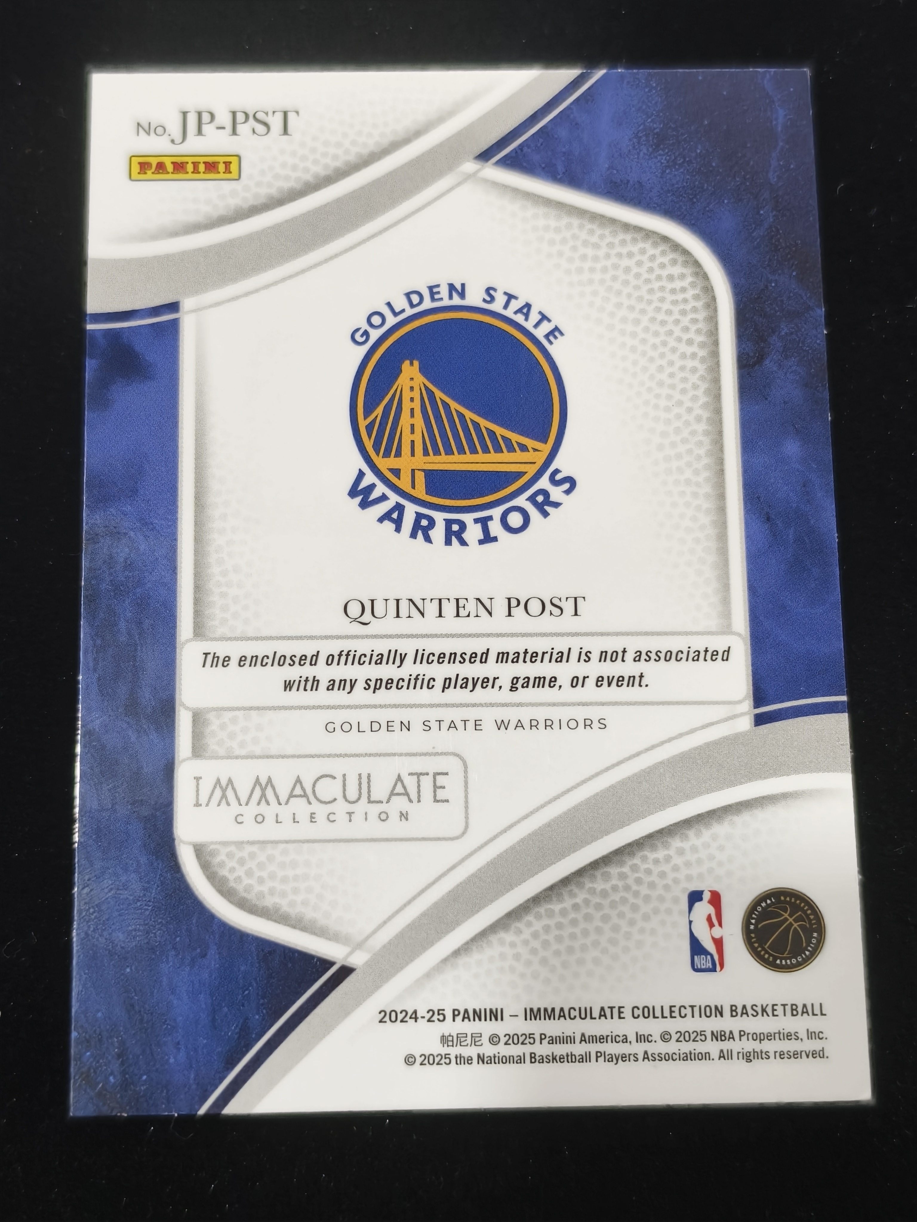 2024-25 IMMACULATE Jersey Number 大窗球衣号码 patch 新秀RC 16/25编 Quinten Post 昆滕波斯特 勇士 金平行 机长代拍 zhq