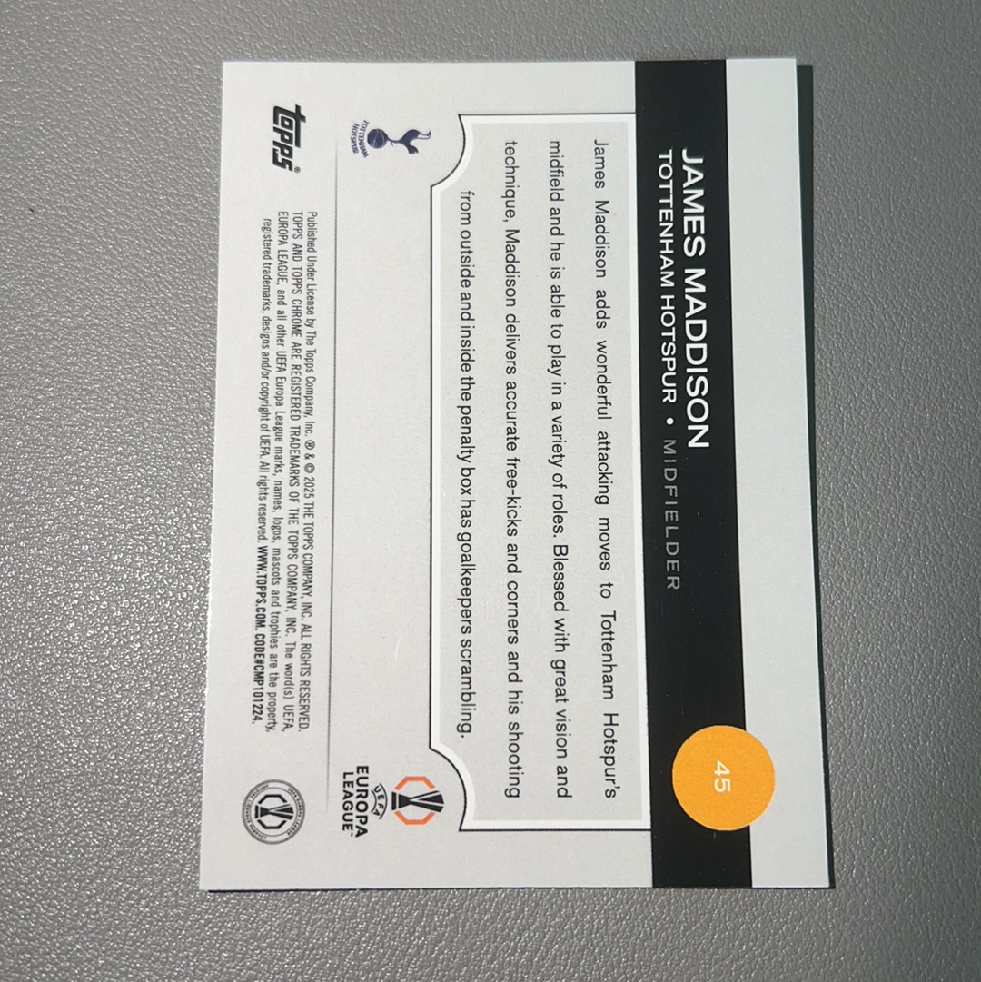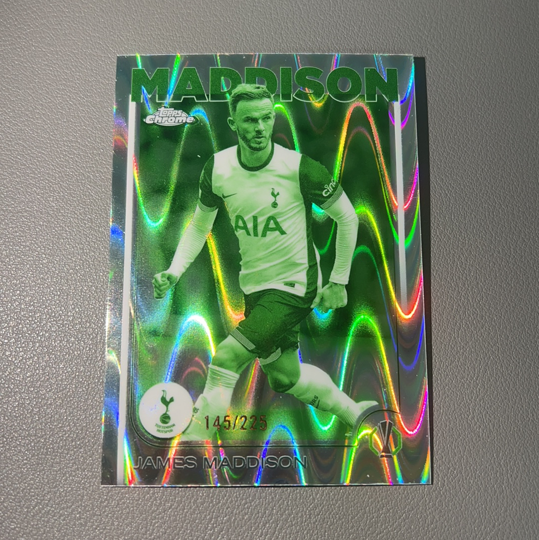 2025 Topps Chrome James Maddison 欧冠 TC 热刺 詹姆斯 麦迪逊 英格兰 145/225编 荧光折 绿折 绿波纹折 卡品如图 收藏必备
