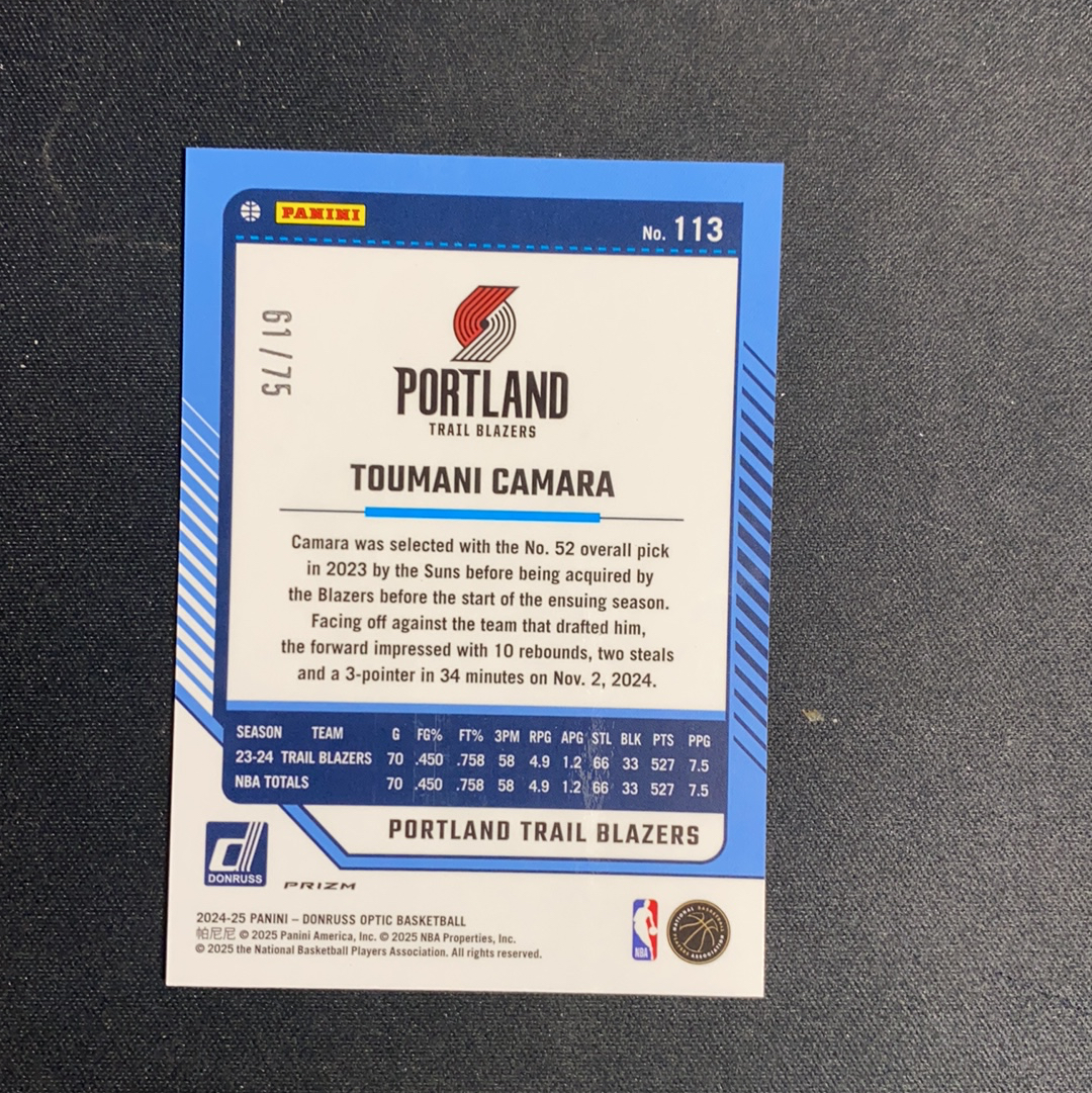 2024-25 Panini Optic Toumani Camara 开拓者 卡马拉 75编 卡品如图 空白