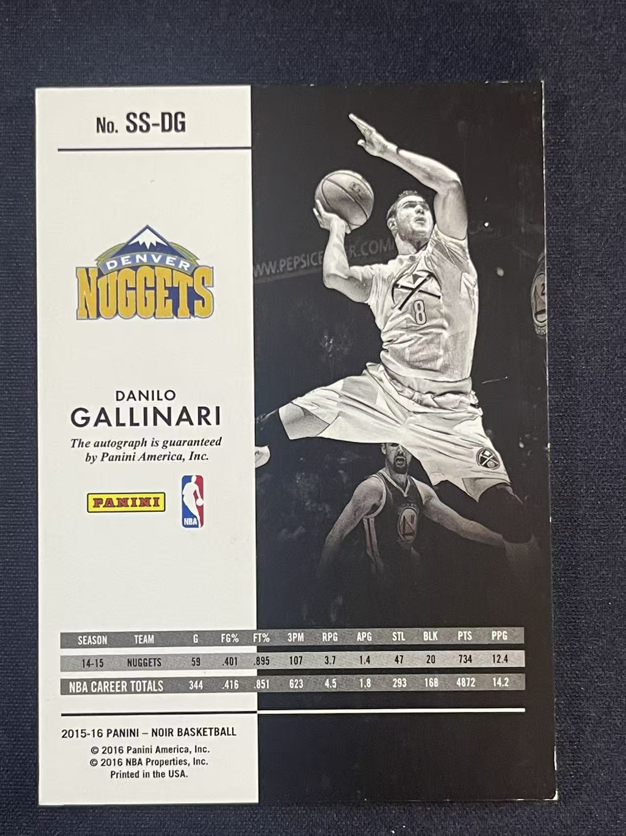 2015-16 Panini Noir Danilo Gallinari #SS-DG 诺尔 达尼罗 加里纳利 掘金 聚光灯签 镜面 金笔签 卡签 42/49编 lyx04