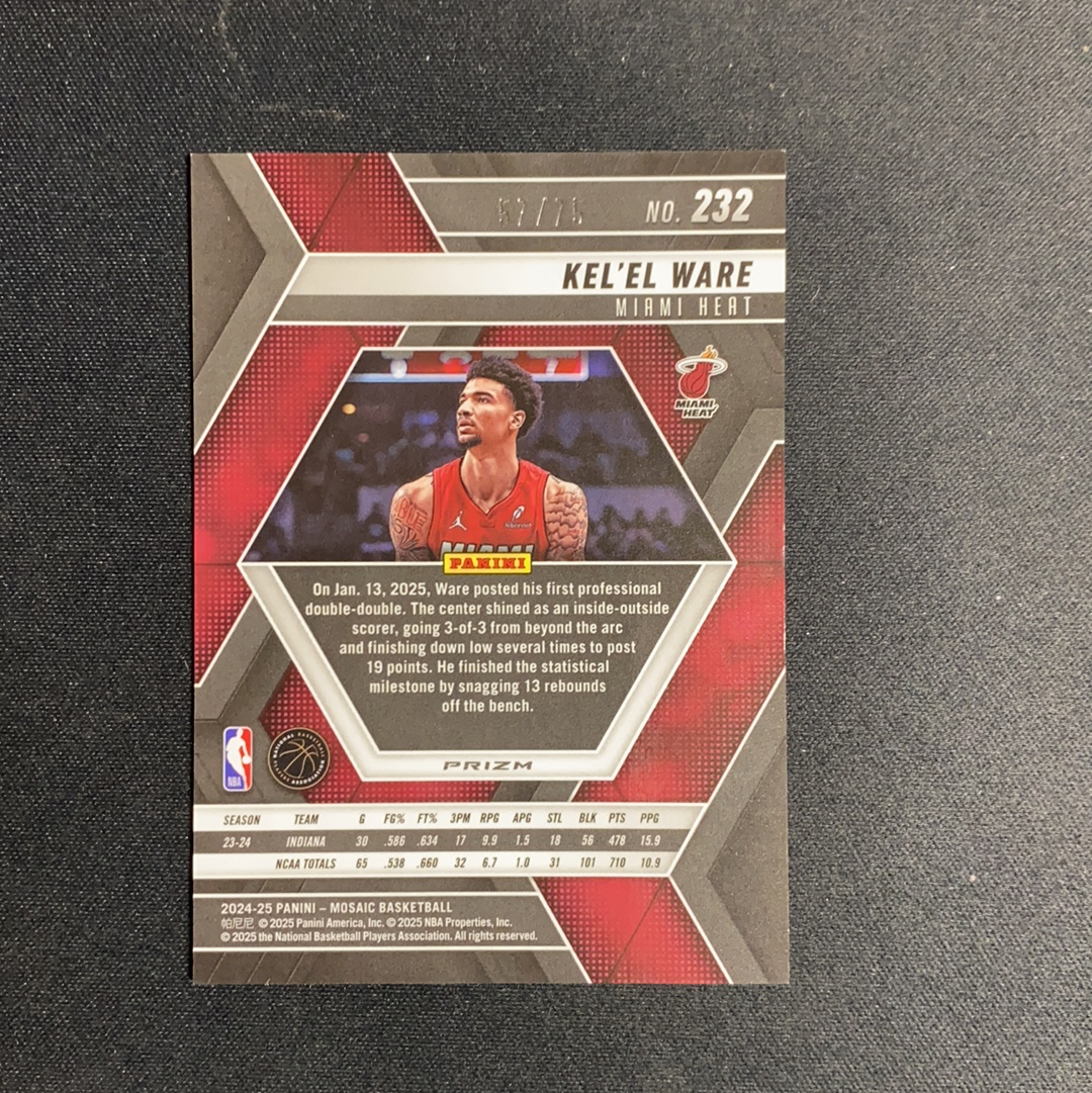 2024-25 Panini Mosaic Kel'el Ware RC 马赛克 热火 新秀 凯莱尔 韦尔 75编 卡品如图 空白