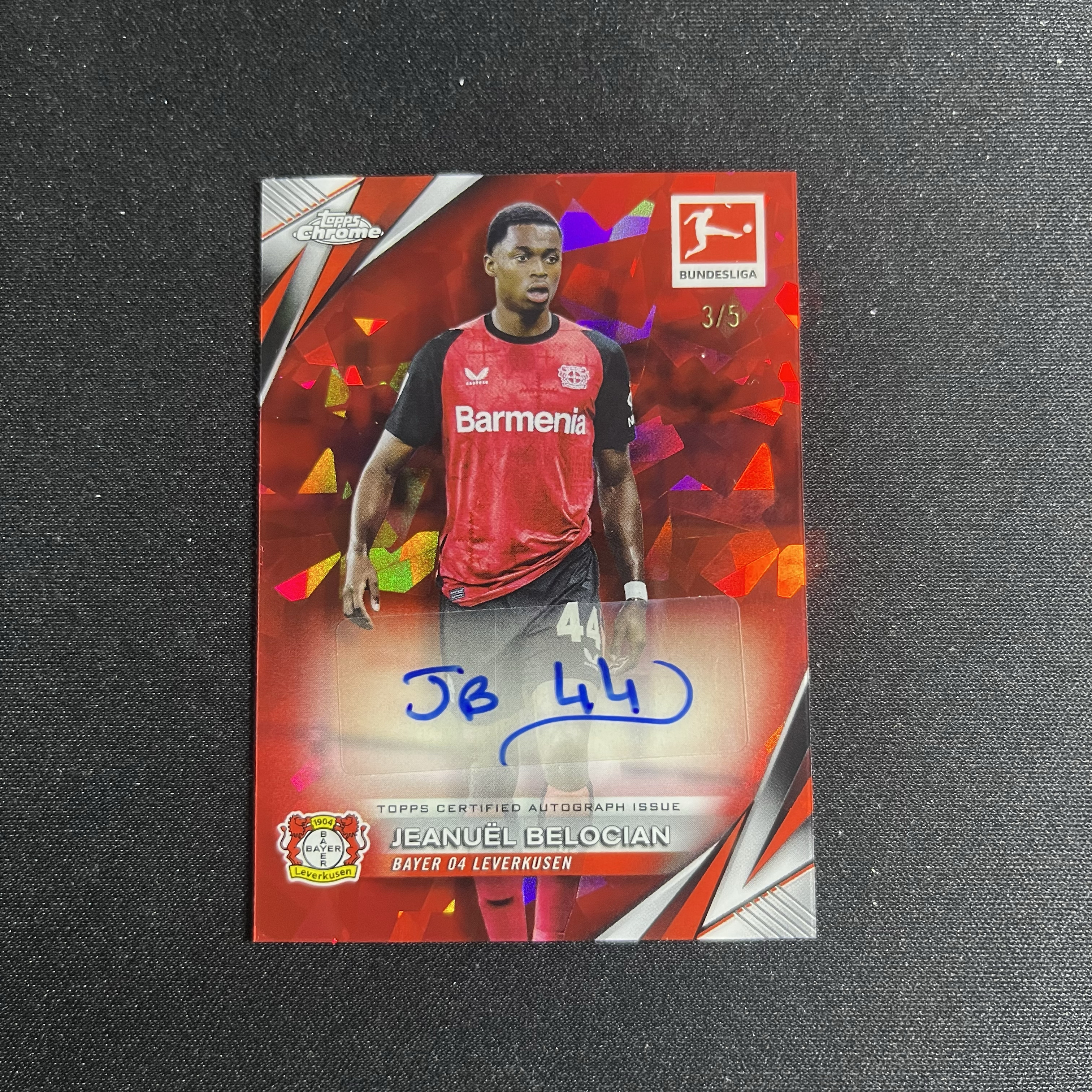 2024-25 Topps Chrome Jeanuel Belocian 德甲 蓝宝石 贝洛西安 3/5编 签字 红碎冰折射 勒沃库森 卡品如图 收藏必备【超玩代卖 嘿嘿】