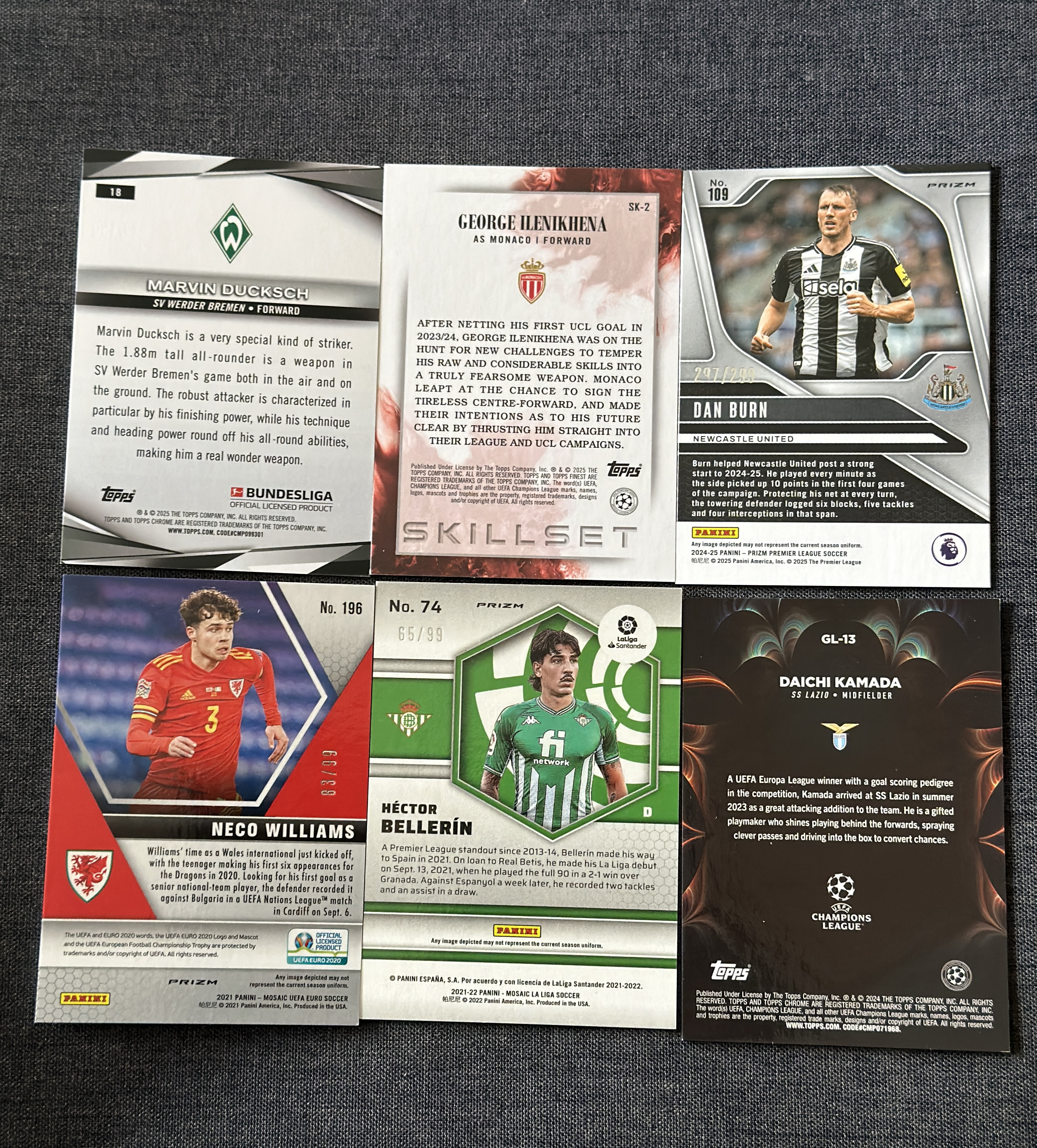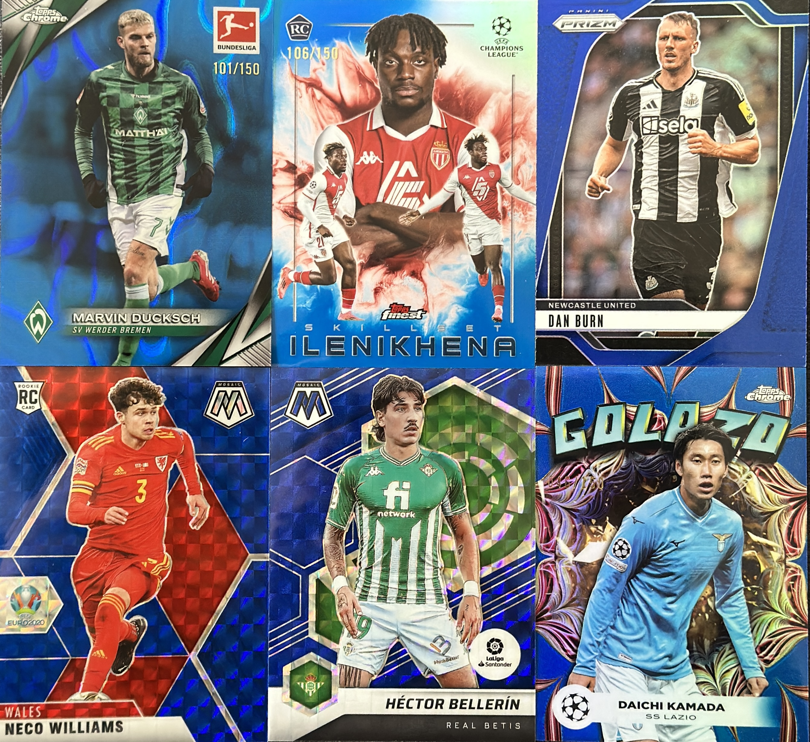2021-22 Panini Mosaic Hector Bellerin 【6张带编打包LOT】贝莱林/尼科 威廉姆斯/卡马达/丹 伯恩/伊莱尼凯纳 99/150/299编 蓝折 马赛克【LEC】