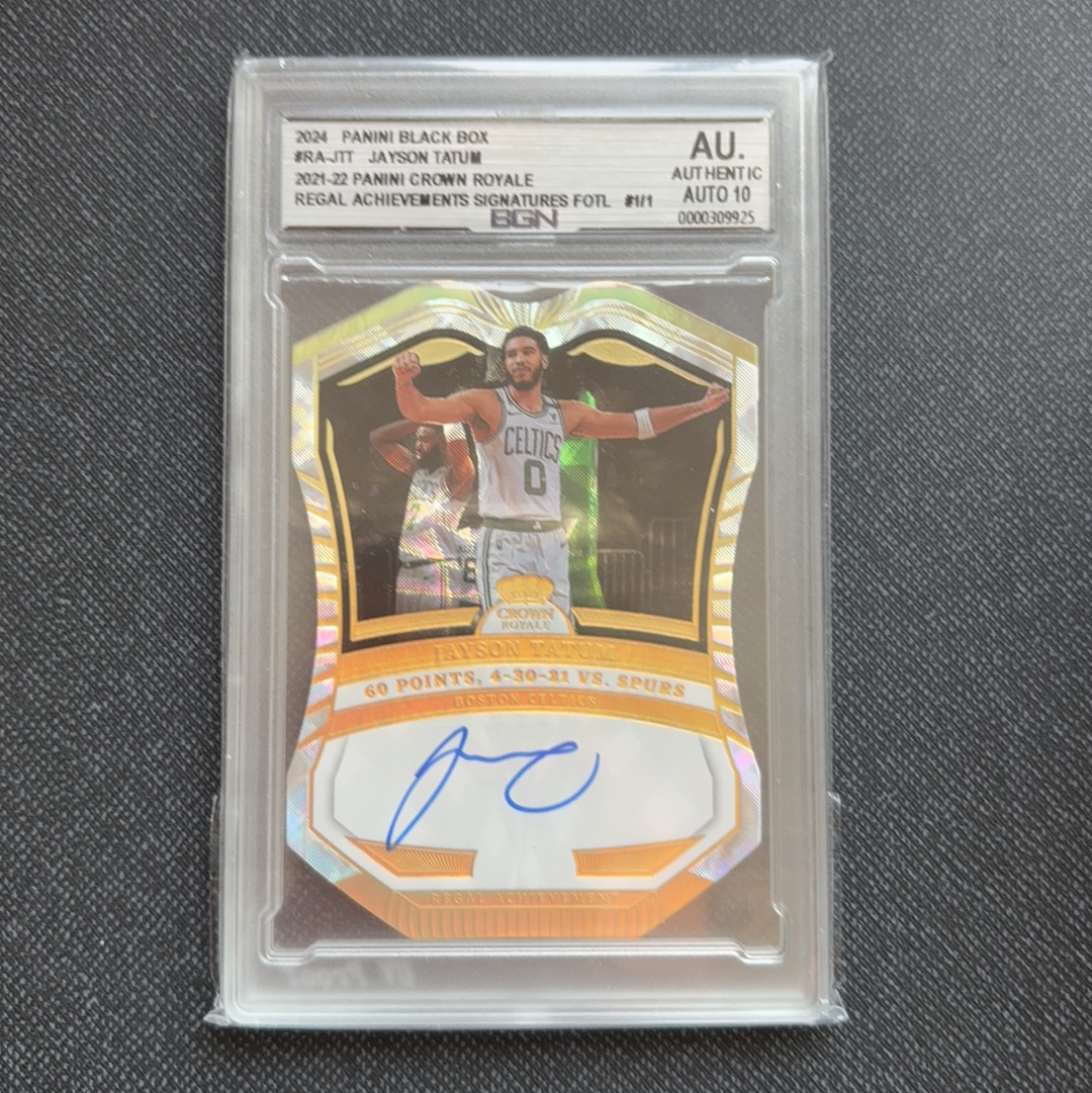 2021-22 Panini Crown Royale Jayson Tatum 皇冠 凯尔特人 杰森塔图姆 獭兔 签字 卡签 黑盒1/1 1编1 异形切割 金折 全明星 bgn鉴真 巴里扇
