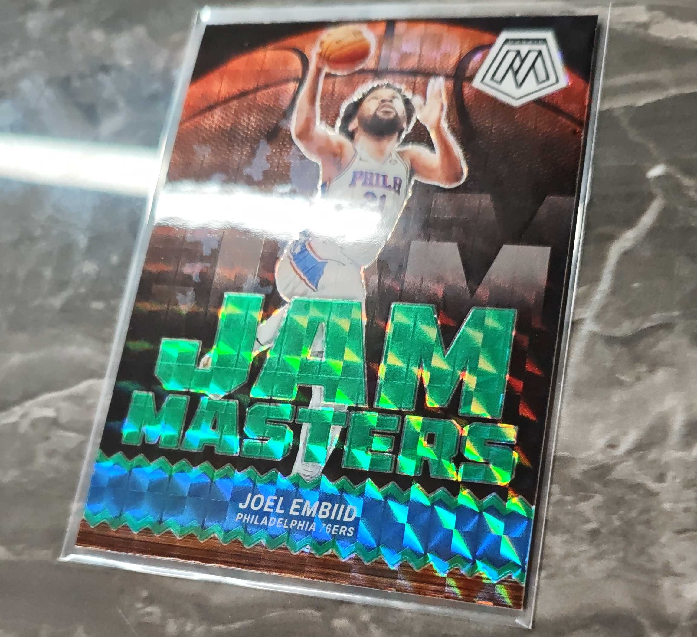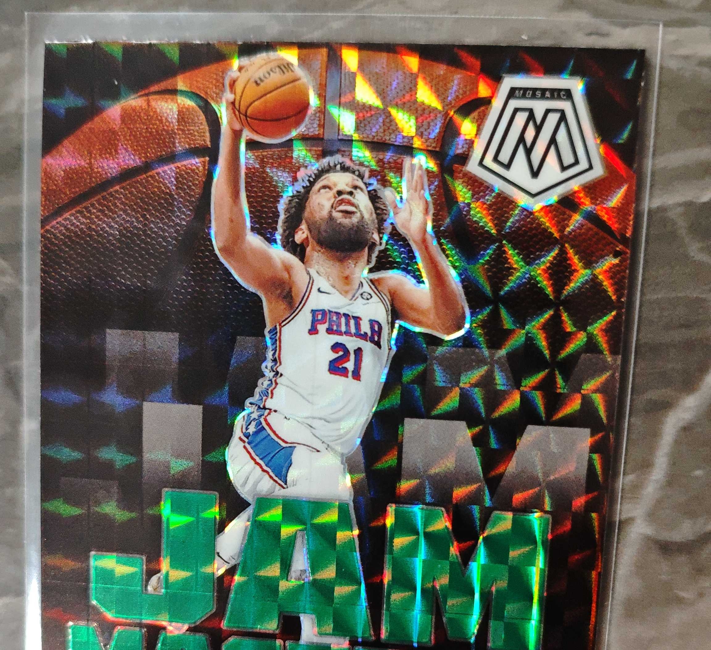 2023-24 Panini Mosaic Joel Embiid NBA 马赛克 乔尔 恩比德 76人 JAM MASTERS特卡 大头特卡 绿马赛克折 实卡精美 瑕疵如图 不退不换 凑套必备 V11
