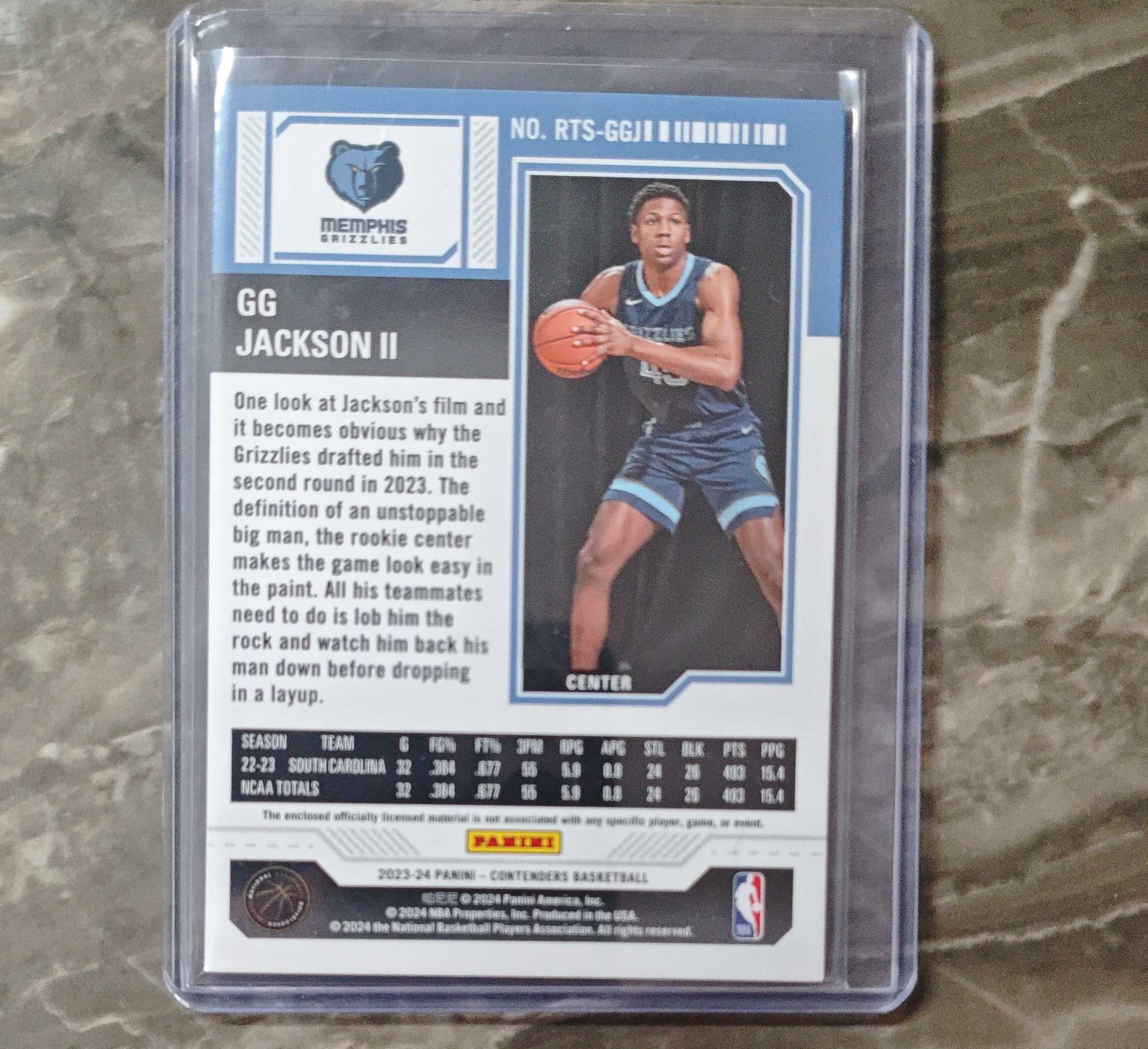 2023-24 Panini Contenders GG JACKSON II RC NBA 球票 GG 杰克逊二世 灰熊 新秀 小窗物料 素球衣 实卡精美 瑕疵如图 不退不换 凑套必备 V11