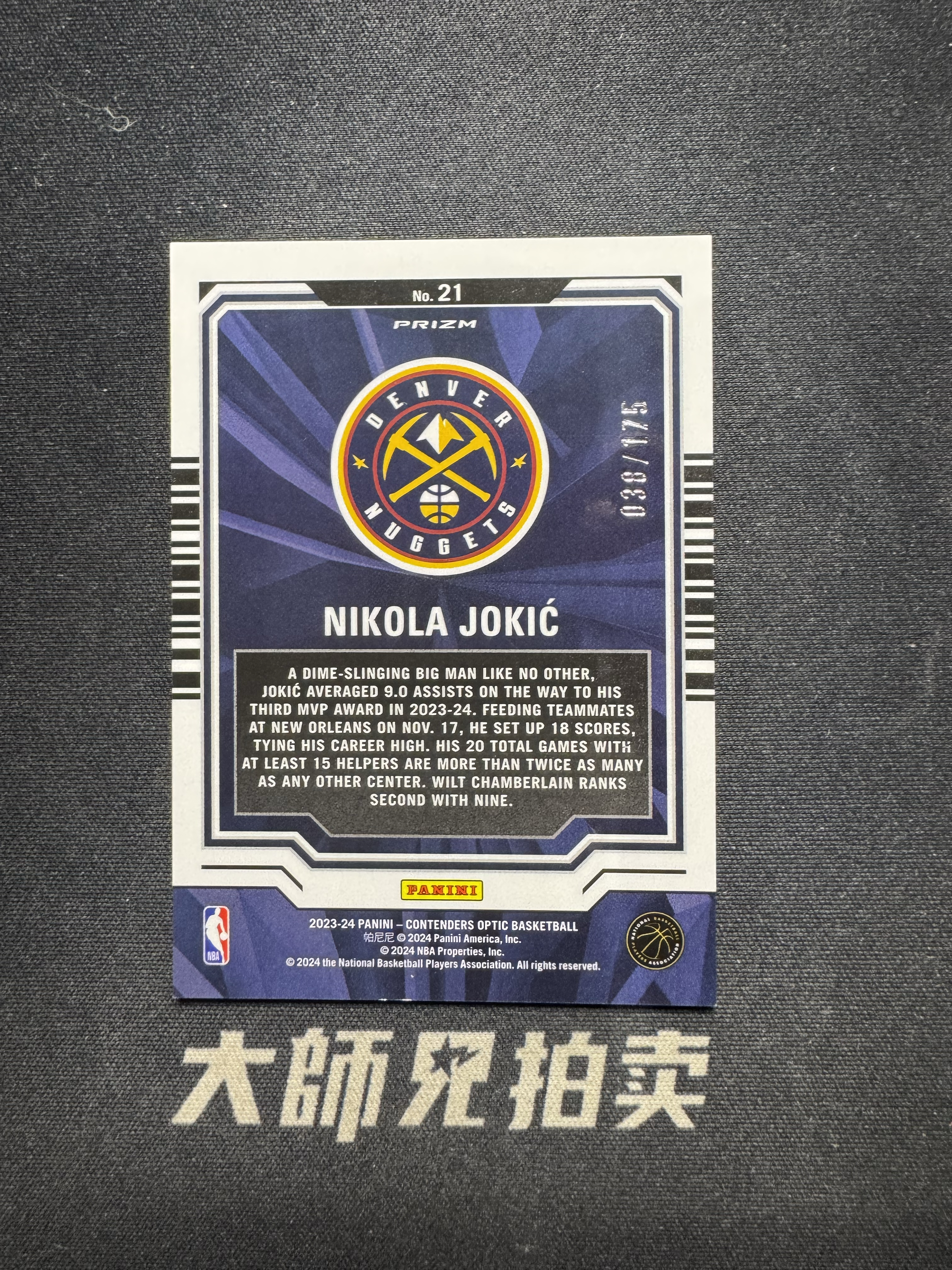 【大师兄拍卖】2023-24 Panini contenders optic NIKOLA JOKIC 掘金 尼古拉 约基奇 op球票 /175编 红碎冰折 数据特卡 通行品 -Keith-