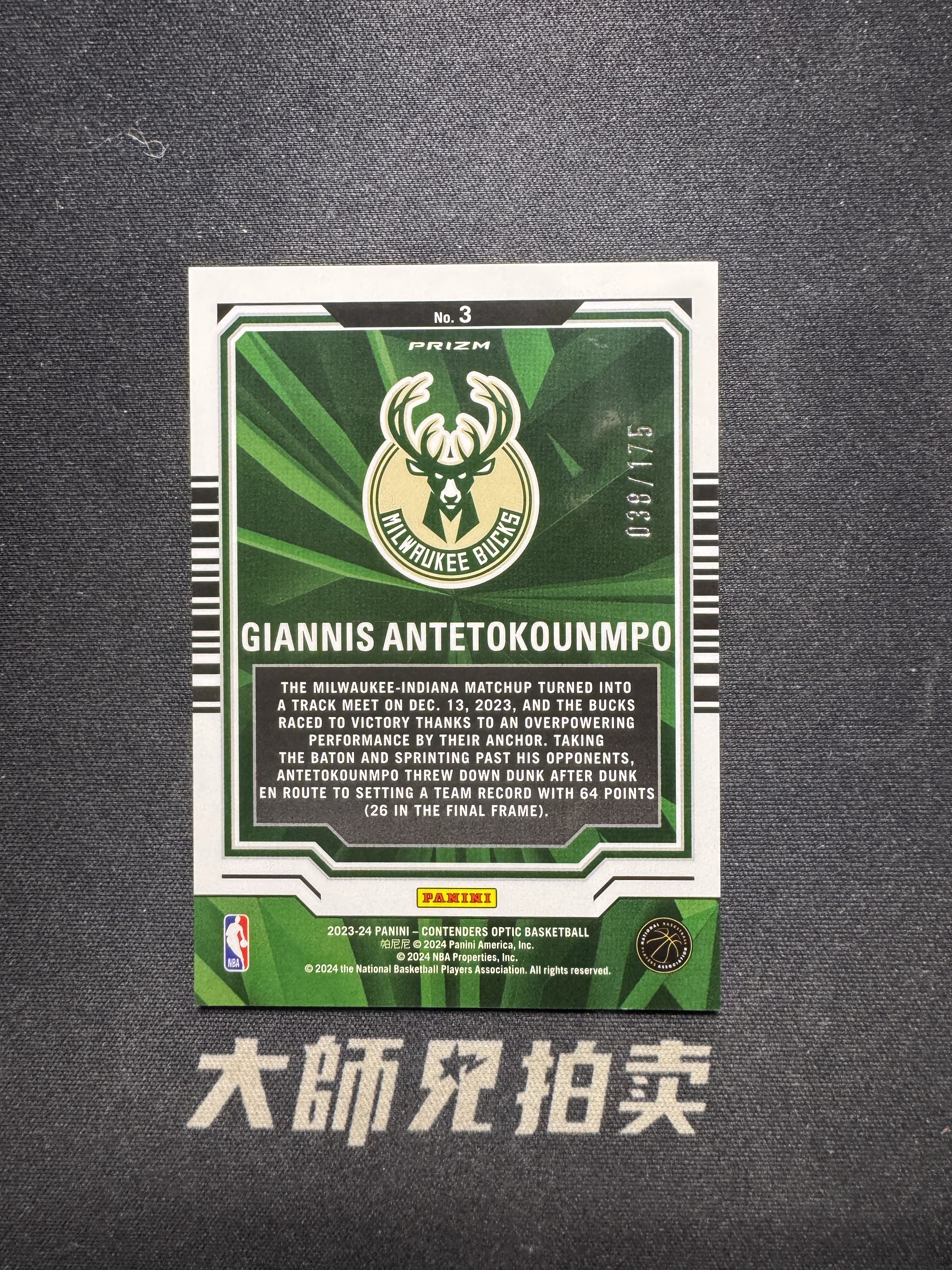 【大师兄拍卖】2023-24 Panini contenders optic GIANNIS ANTETOKOUNMPO 雄鹿 阿德托昆博 op球票 /175编 红碎冰折 数据特卡 通行品-Keith