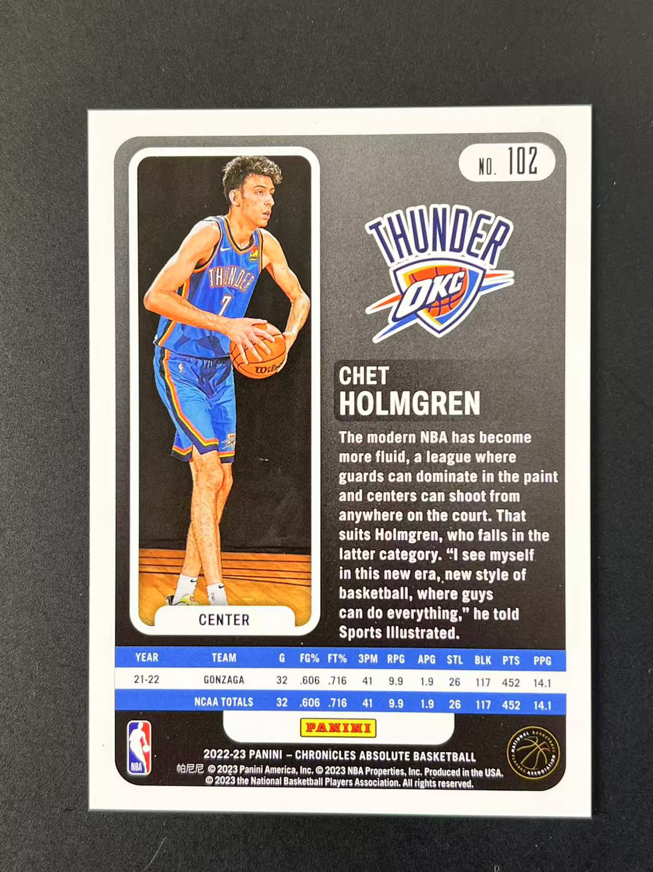 2022-23 Panini Chronicles Chet Holmgren RC【卡老鼠代卖】编年史 雷霆 新秀RC 切特 霍姆格伦 09/18编 超低编 折射 天意 寄付