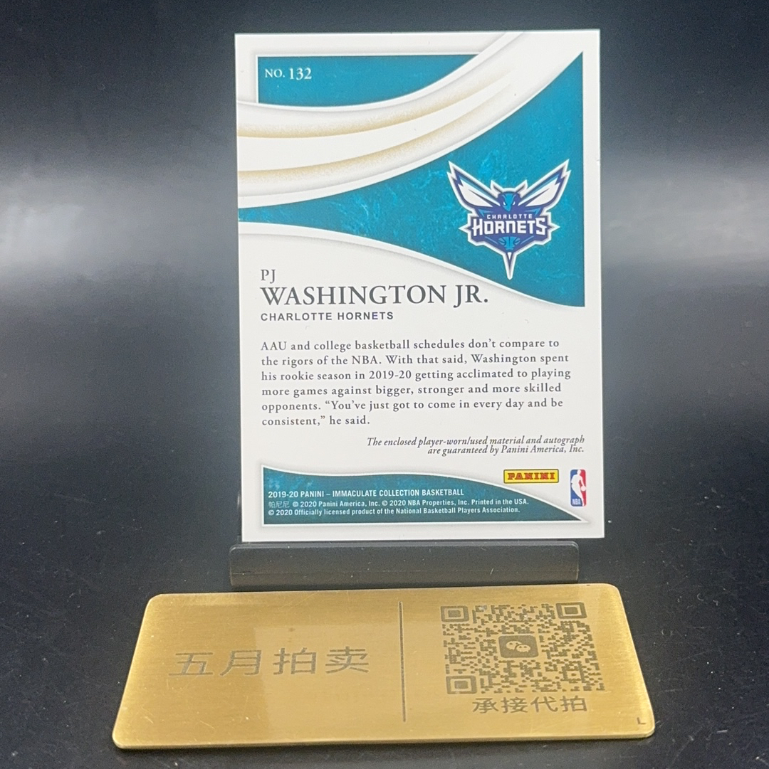2019-20 Panini Immaculate PJ Washington Jr. 【五月拍卖 顺丰空运】爱咪咪 新秀RC PJ 华盛顿 RPA 签字 球衣 卡签 99编 黄蜂 小王q109