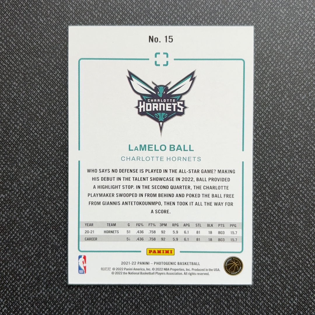 2021-22 Panini Photogenic Basketball 上镜 元年 篮球 三球 拉梅洛 鲍尔 Lamelo Ball 金字 经典选图 夏洛特黄蜂 卡品如图 巴里扇