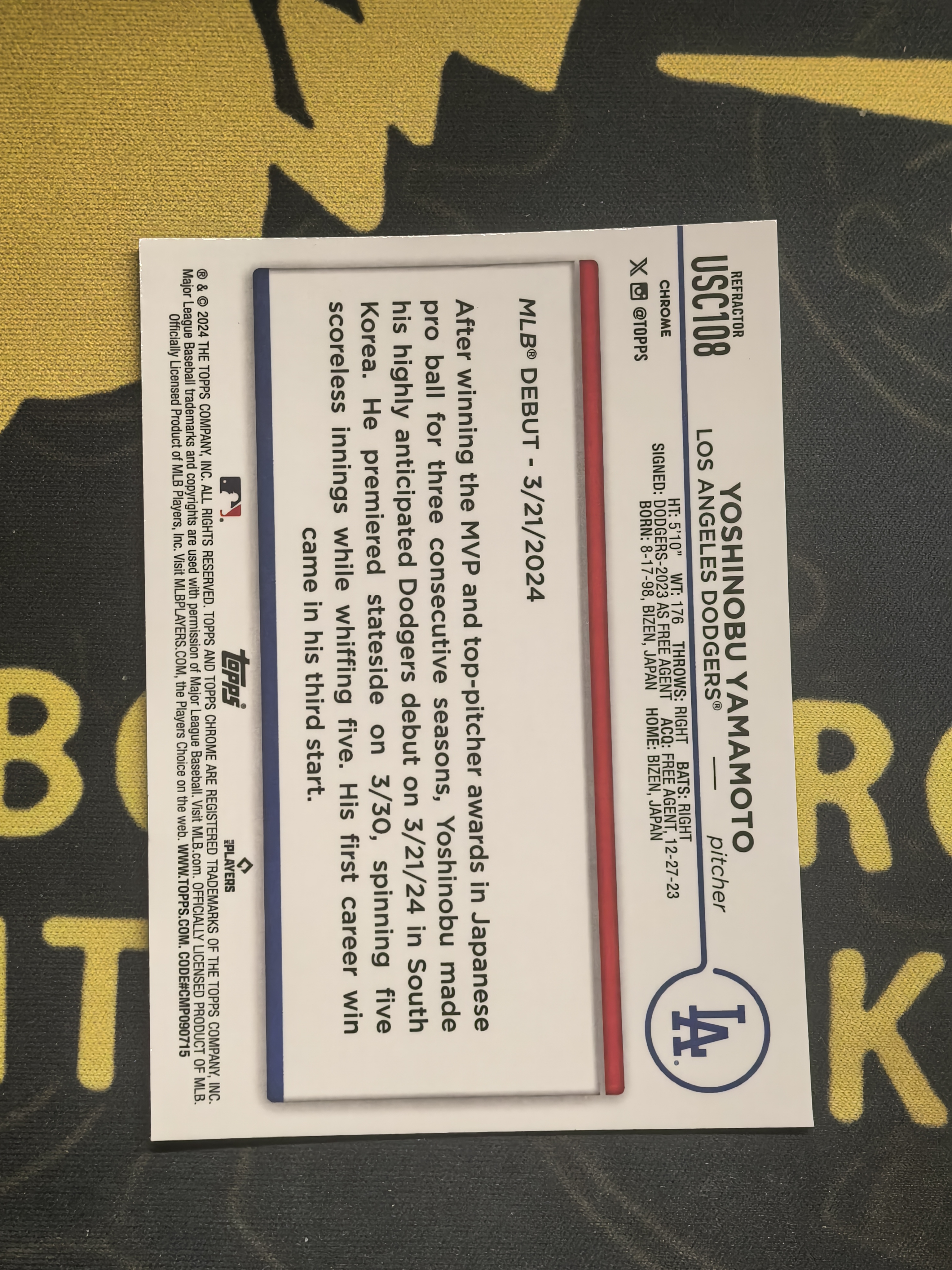 2024 Topps Chrome Yoshinobu Yamamoto RC TC棒球系列 新秀RC 山本由伸 洛杉矶道奇 银折 卡品如图