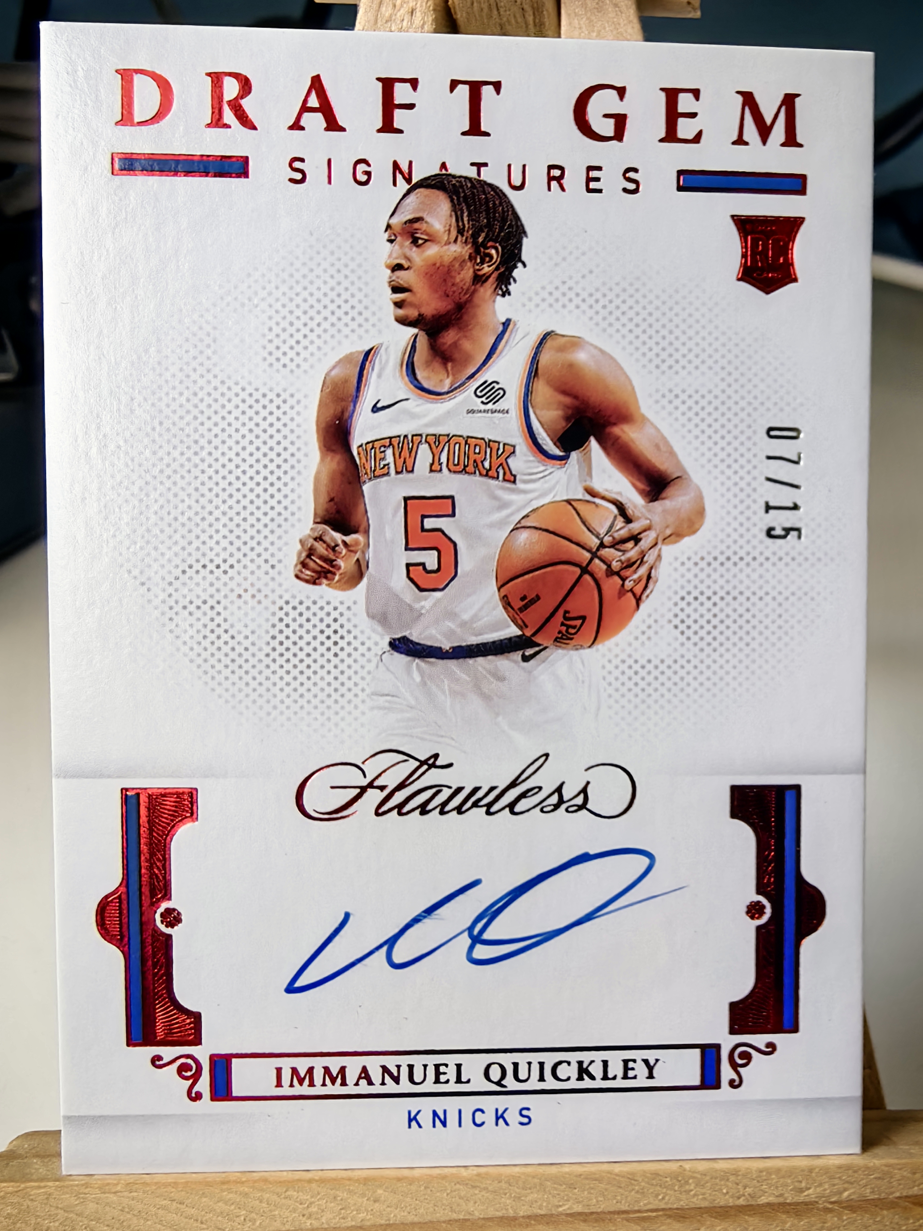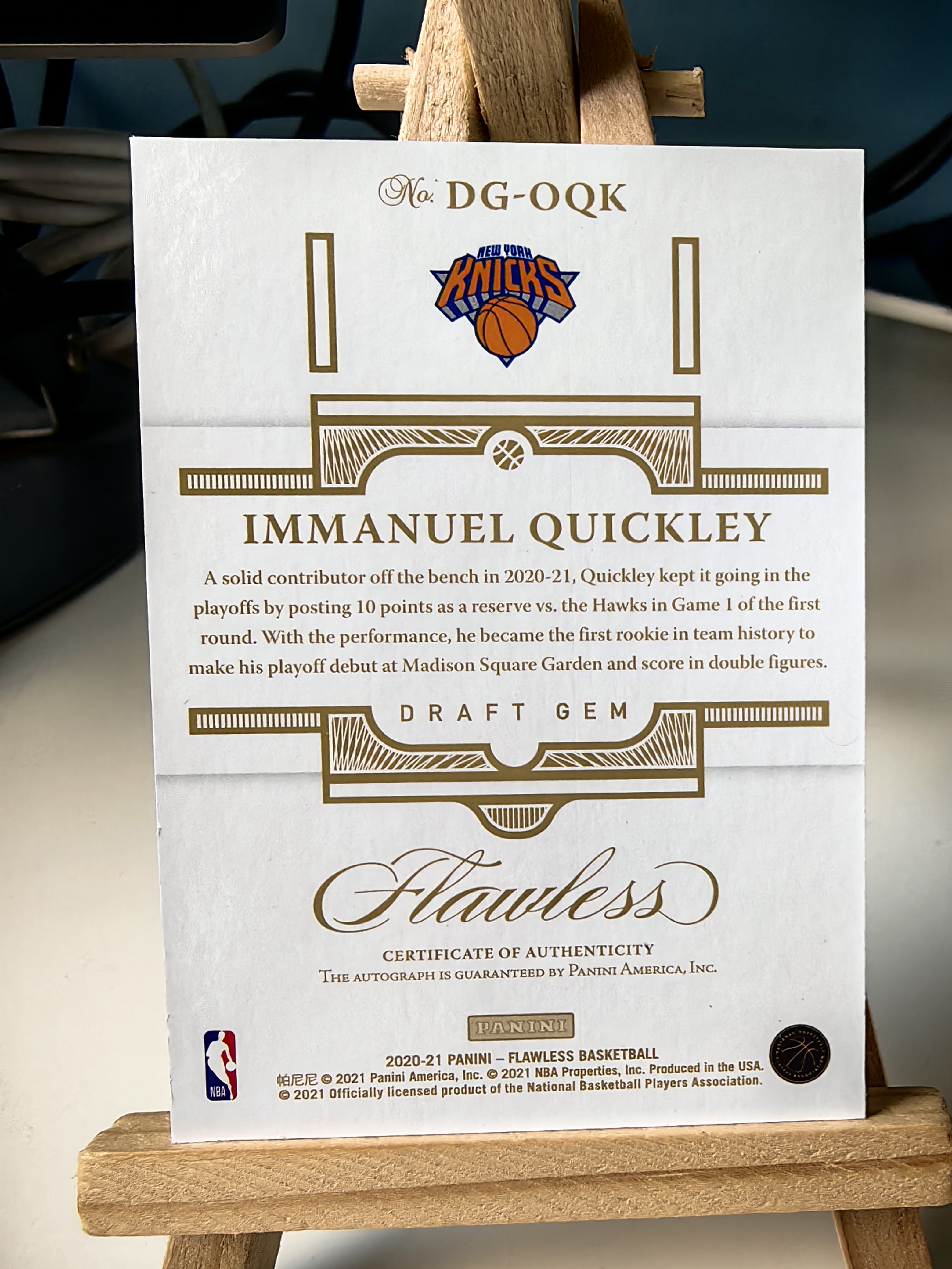 2020-21 Panini Flawless Immanuel Quickley RC 尼克斯 新秀 猛龙 伊曼纽尔 奎克利 手提 超低编 15编 签字 卡签 红平行 Draft Gem签 卡面微瑕