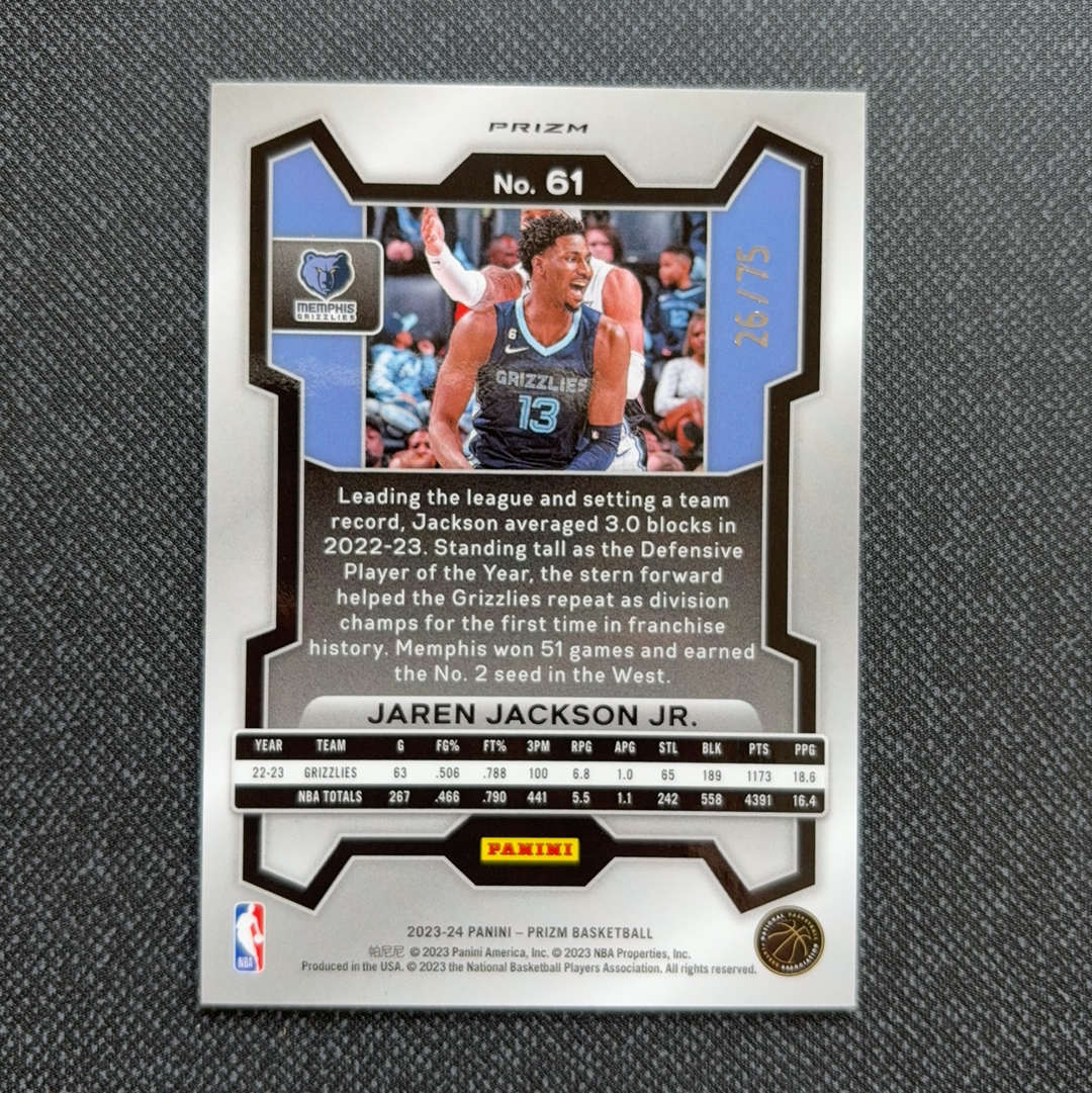 2023-24 Panini Prizm Jaren Jackson Jr. PZ 灰熊 JJJ 小贾伦 杰克逊 折射 紫泡泡折 75编 带编 折射