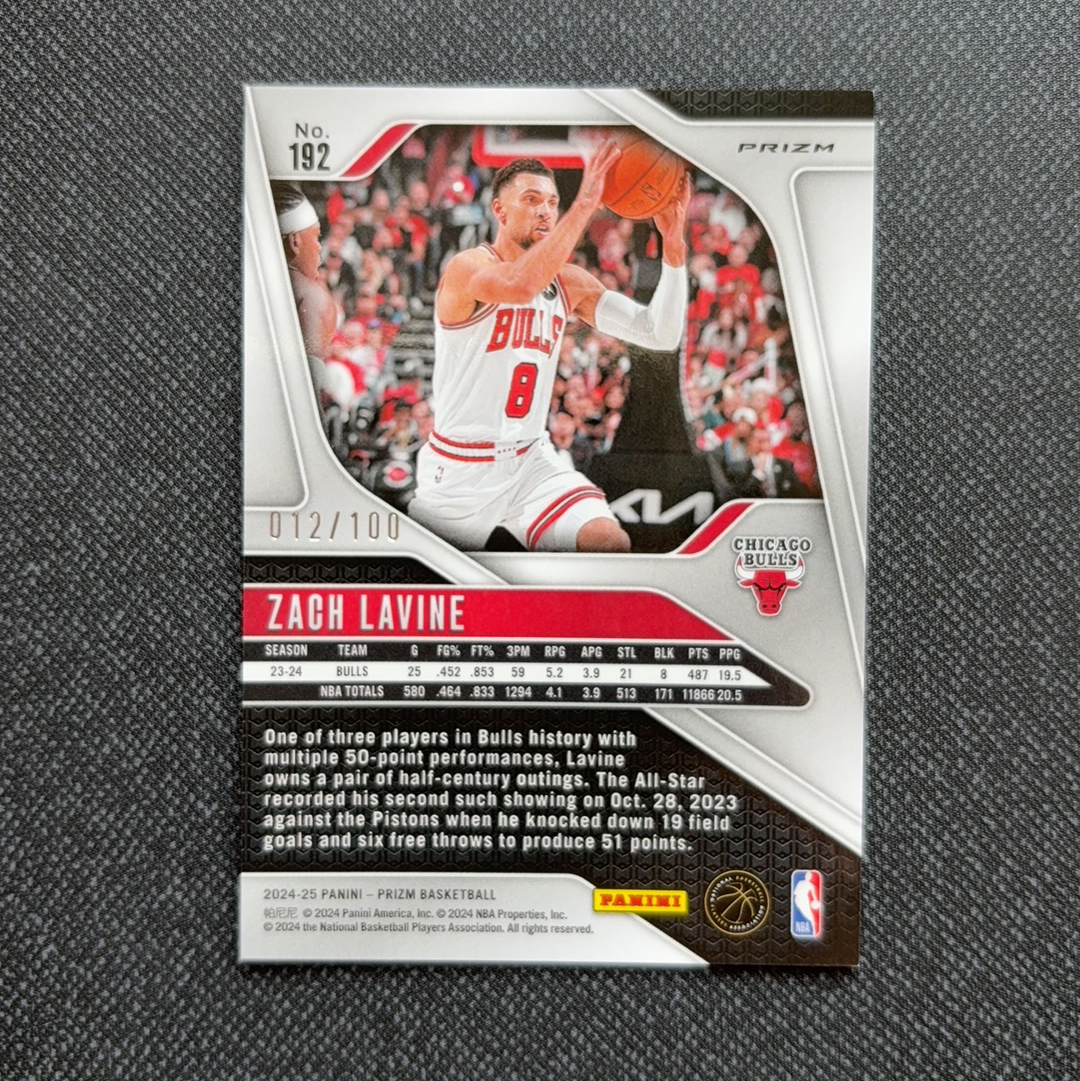 2024-25 Panini Prizm Zach LaVine 公牛 扎克 拉文 扣篮王 100编 红泡泡折 带编 折射 卡品如图 巴里扇