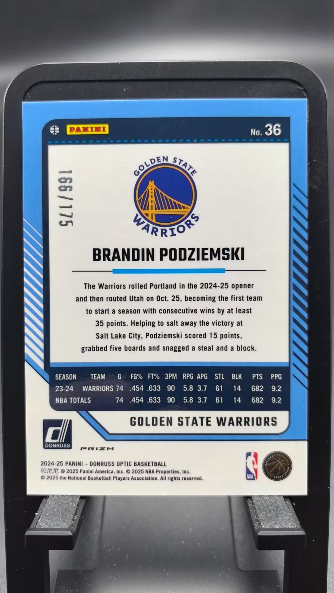 2024-25 Panini Donruss Brandin Podziemski 【EC】 杜蕾斯 勇士 波杰姆斯基 折射 橙折 166/175编 PRR37