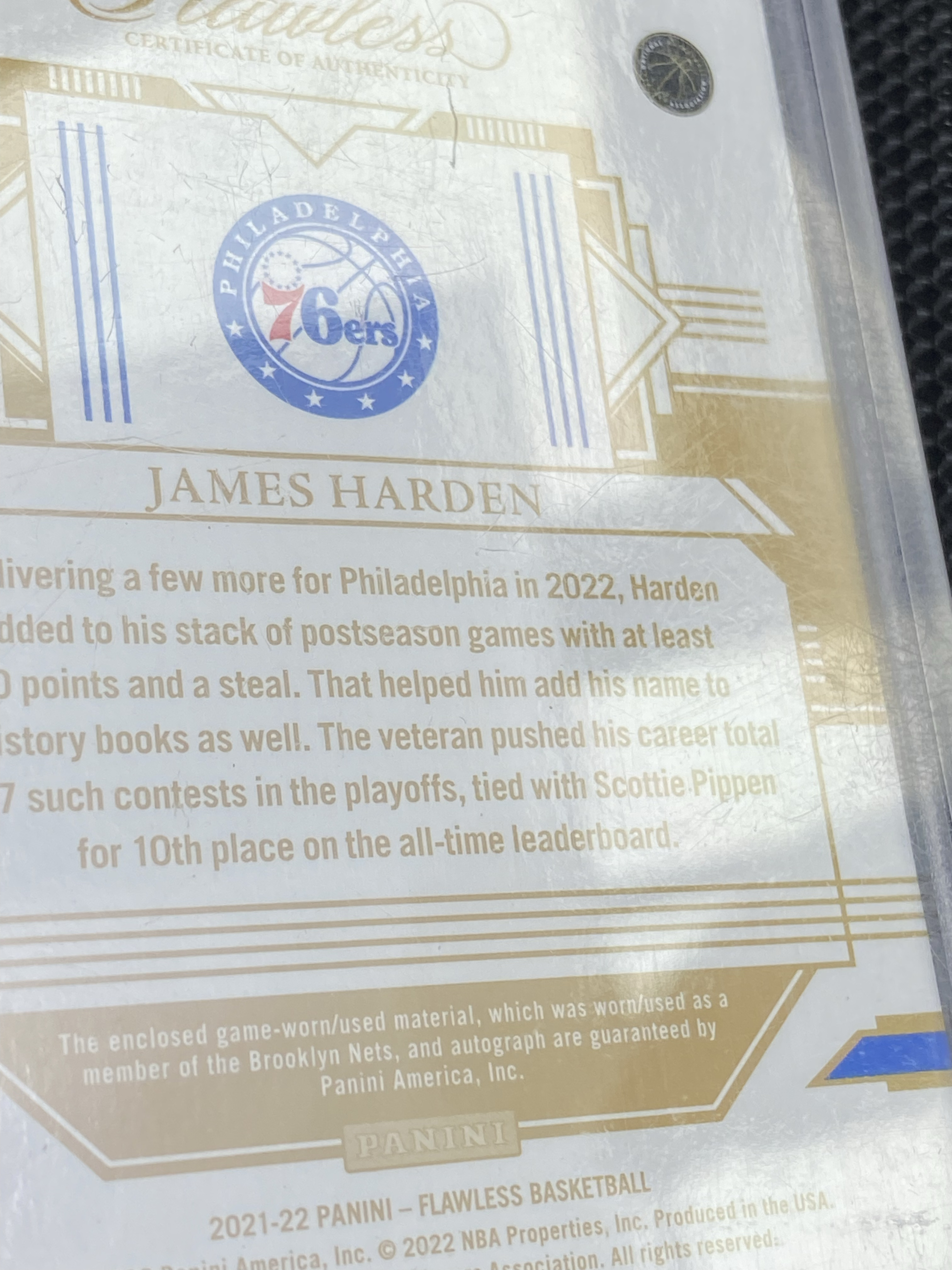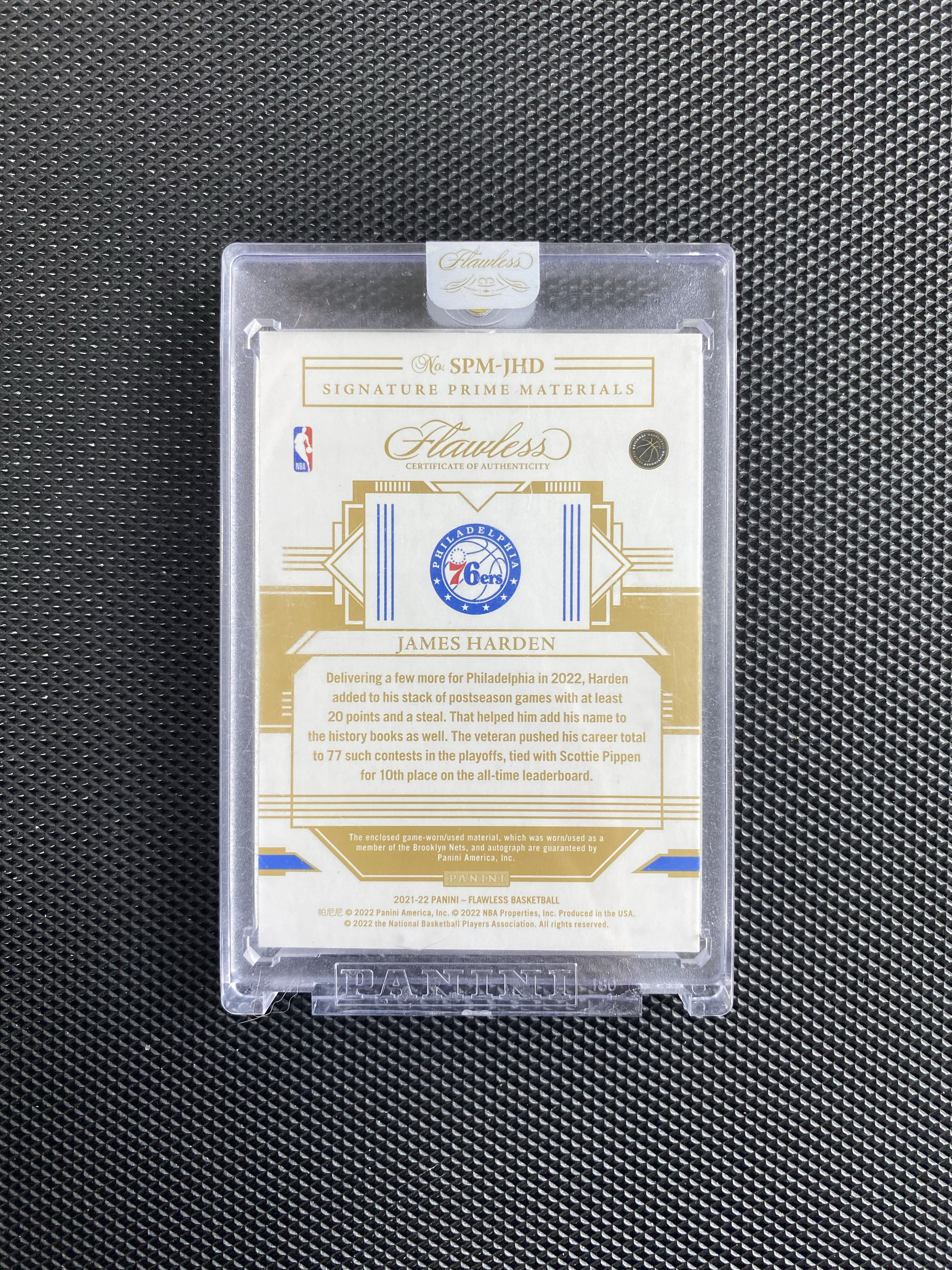 【深情拍卖】2021-22 Panini Flawless 手提 James Harden 76人 快船 大胡子 詹姆斯 哈登 25编 签字 卡签 物料签 落场球衣切割 原封砖 #js277#