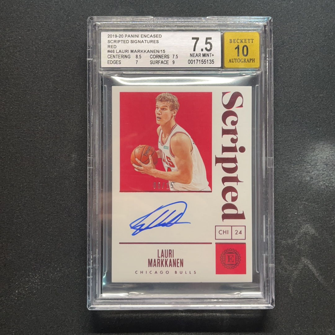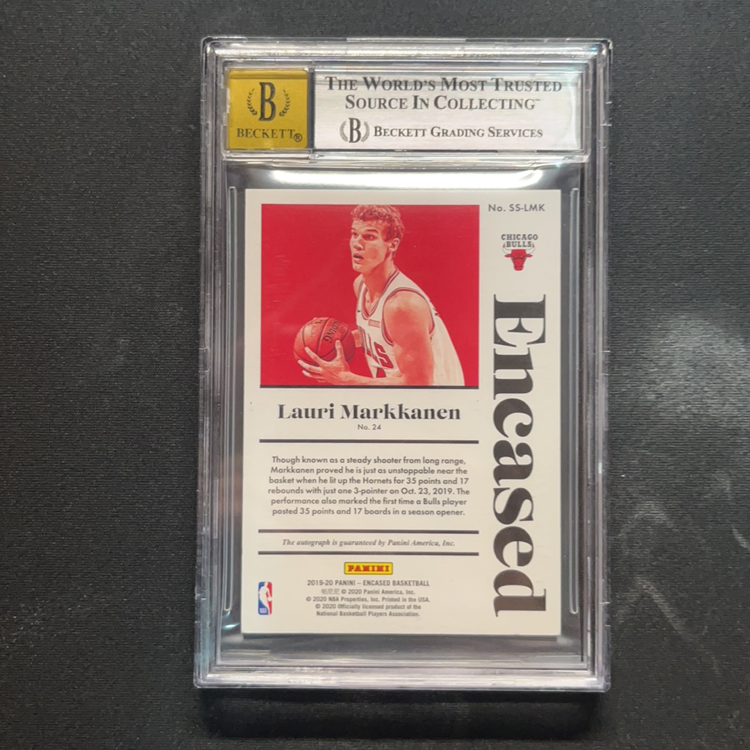 2019-20 Panini Encased Lauri Markkanen 【顶尖拍卖】拇指 云端 劳里 马尔卡宁 公牛 爵士 签字 卡签 /15编 bgs7.5/10分评级 乔治贝利