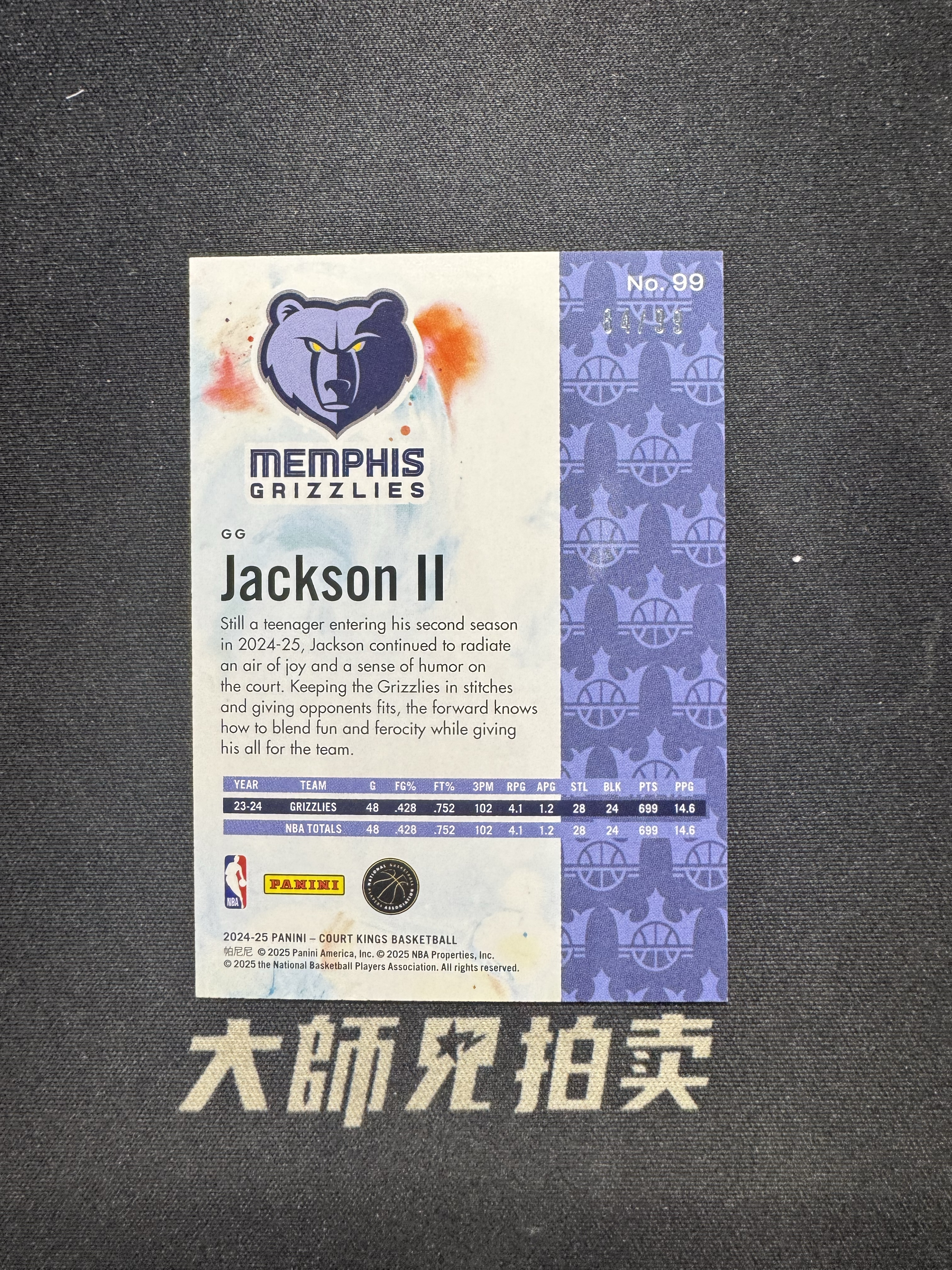 【大师兄拍卖】2024-25 Panini court kings GG Jackson Il 灰熊 GG 杰克逊 油画 /99编 粉平行 base 细节看图-Keith-