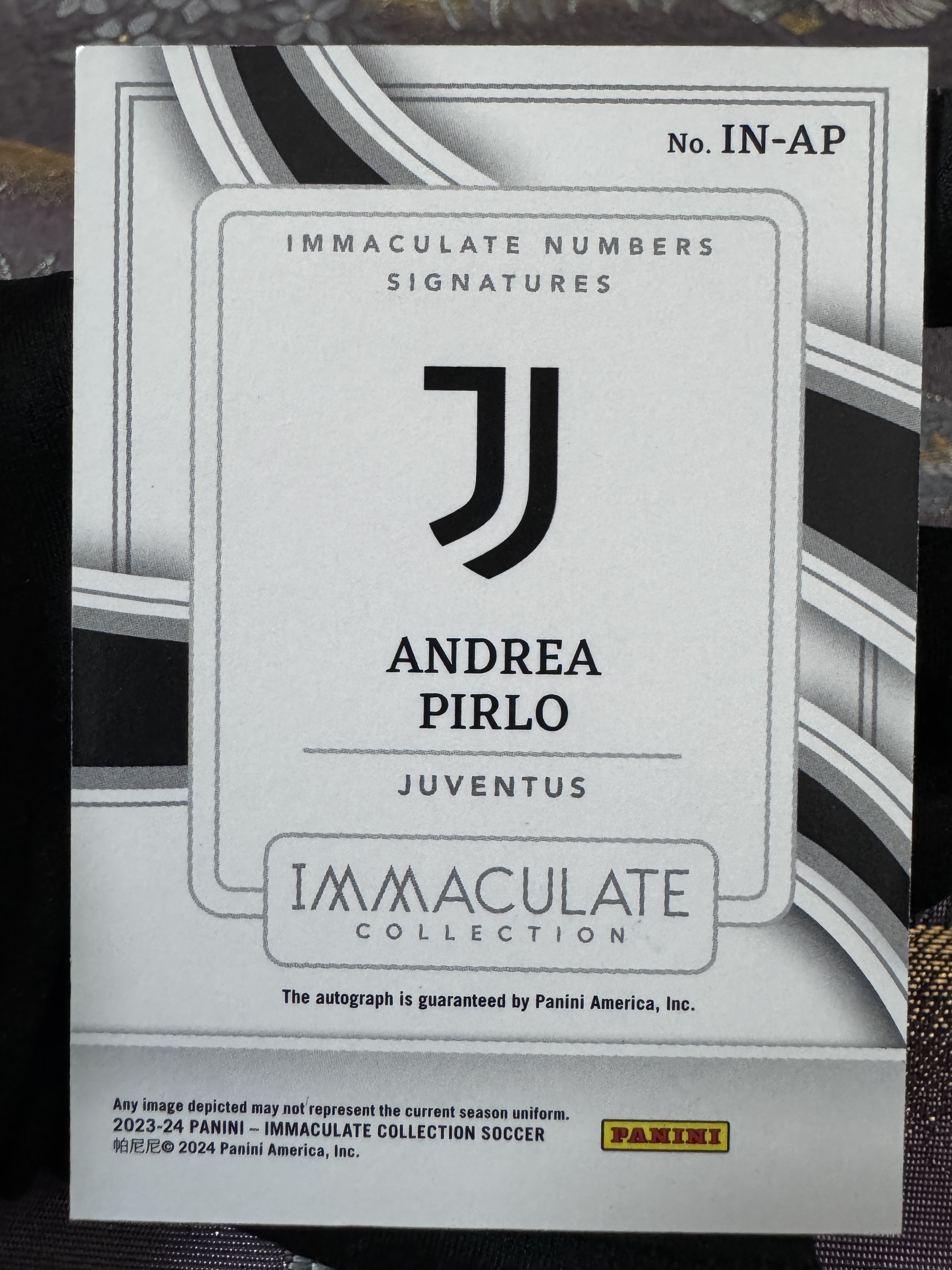 2024 Panini Immaculate Andrea Pirlo IMM 爱咪咪 意大利 AC米兰 尤文图斯 超级巨星 皮尔洛 传奇 大师 背号签 30/99编 签字 高端 完美墨迹 卡品如图