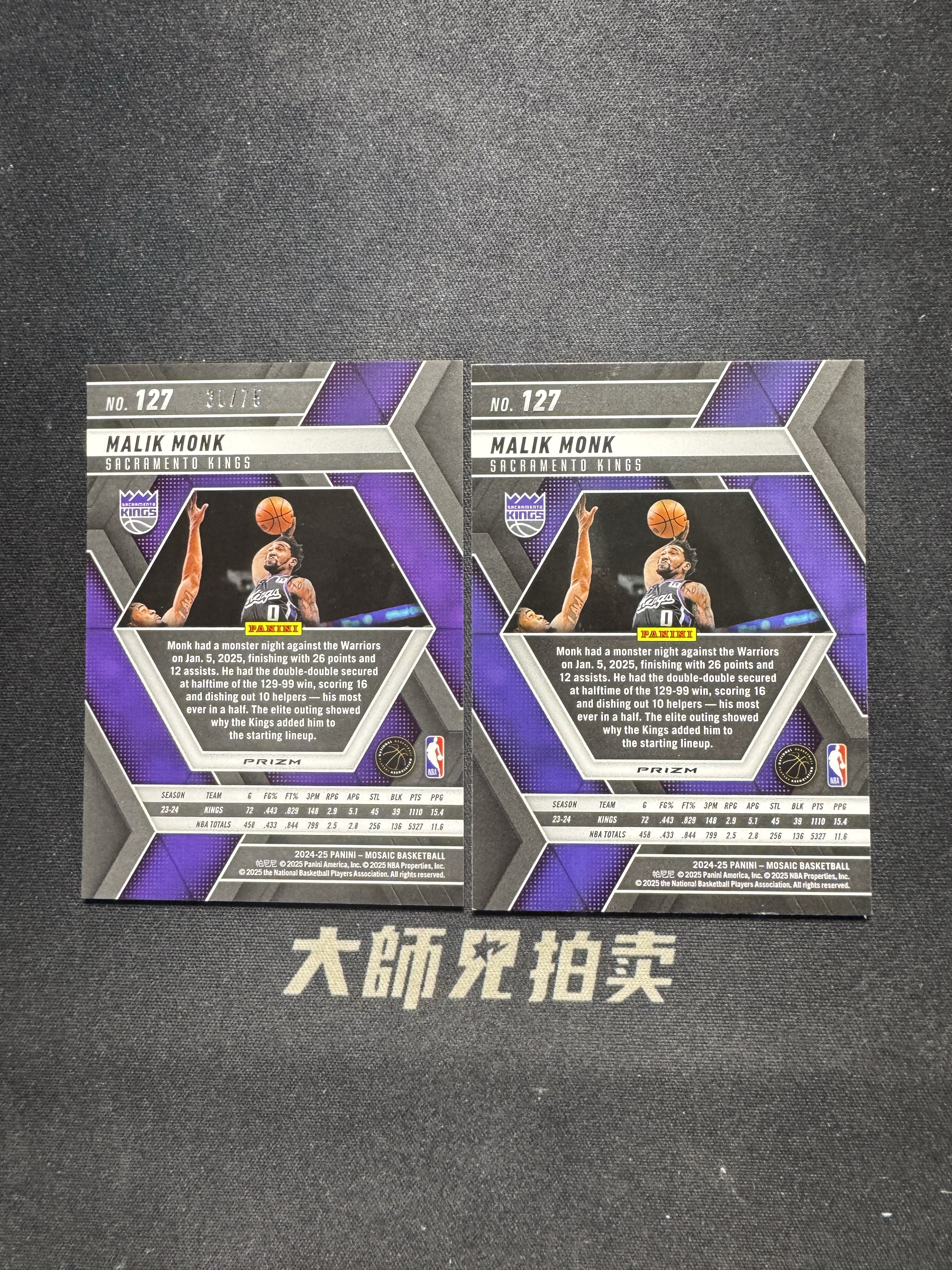 【大师兄拍卖】2024-25 Panini mosaic MALIK MONK 国王 马利克 蒙克 马赛克 75编 红圈圈折 大比例 蜂窝折 蜂巢折 2张 通行品 -Keith-