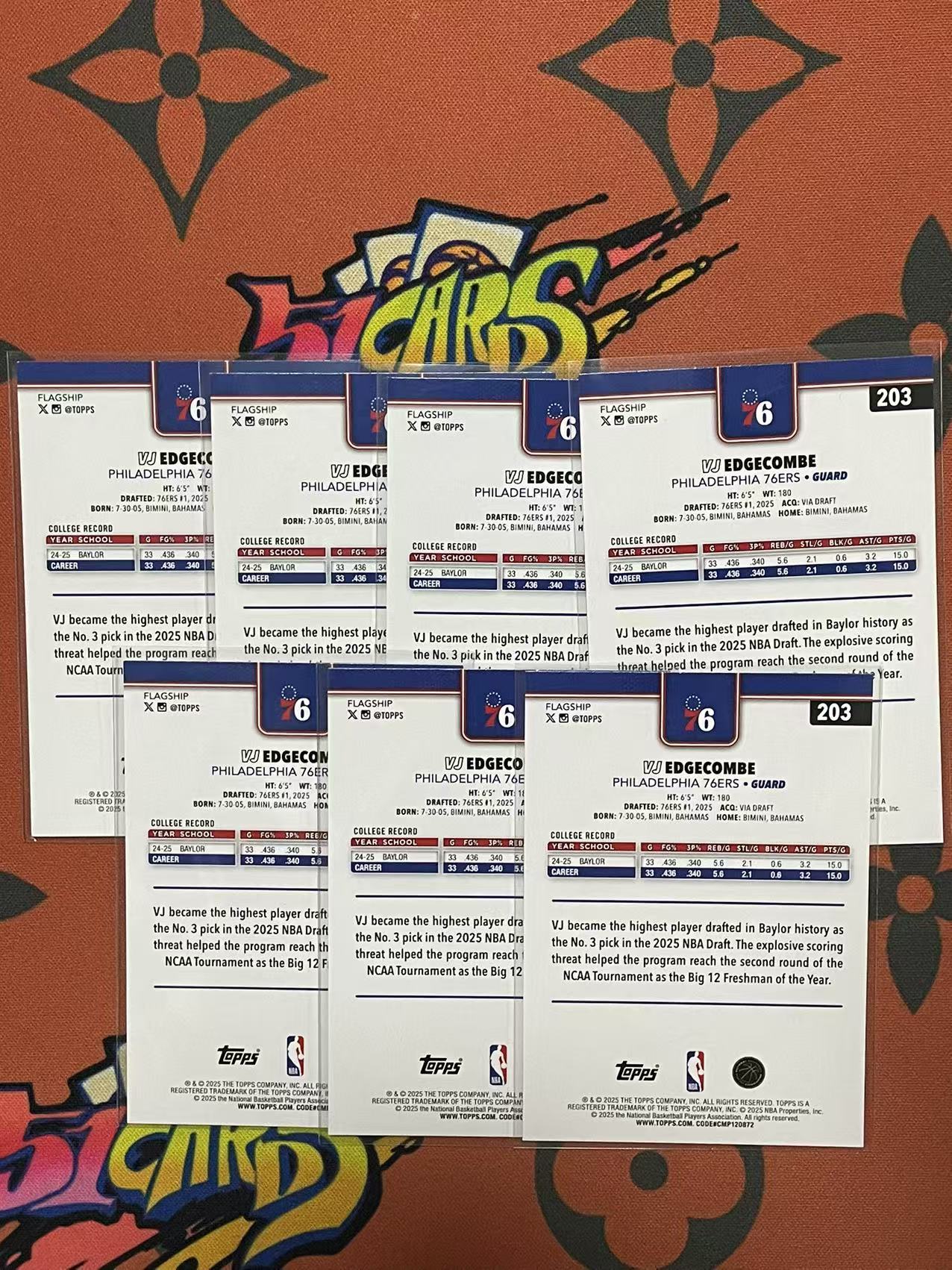 2025-26 Topps Flagship Valdez VJ Edgecombe Jr 【优卡学院】VJ 埃奇库姆 76人 新秀 RC Base Lot 7