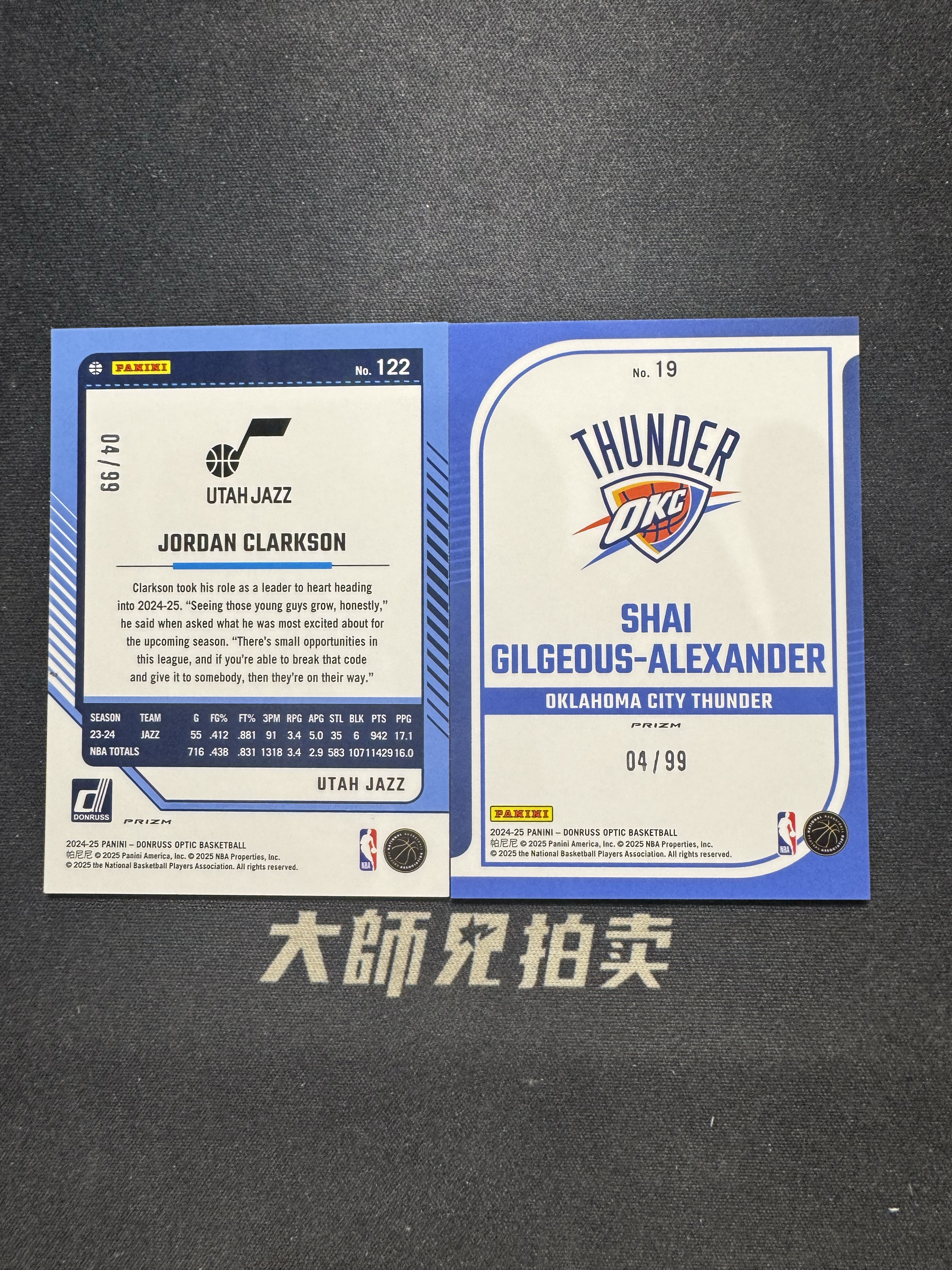 【大师兄拍卖】2024-25 Panini donruss optic 雷霆 亚历山大 爵士 克拉克森 杜蕾斯op /99编 红金圈圈折 2张 通行品 -Keith-