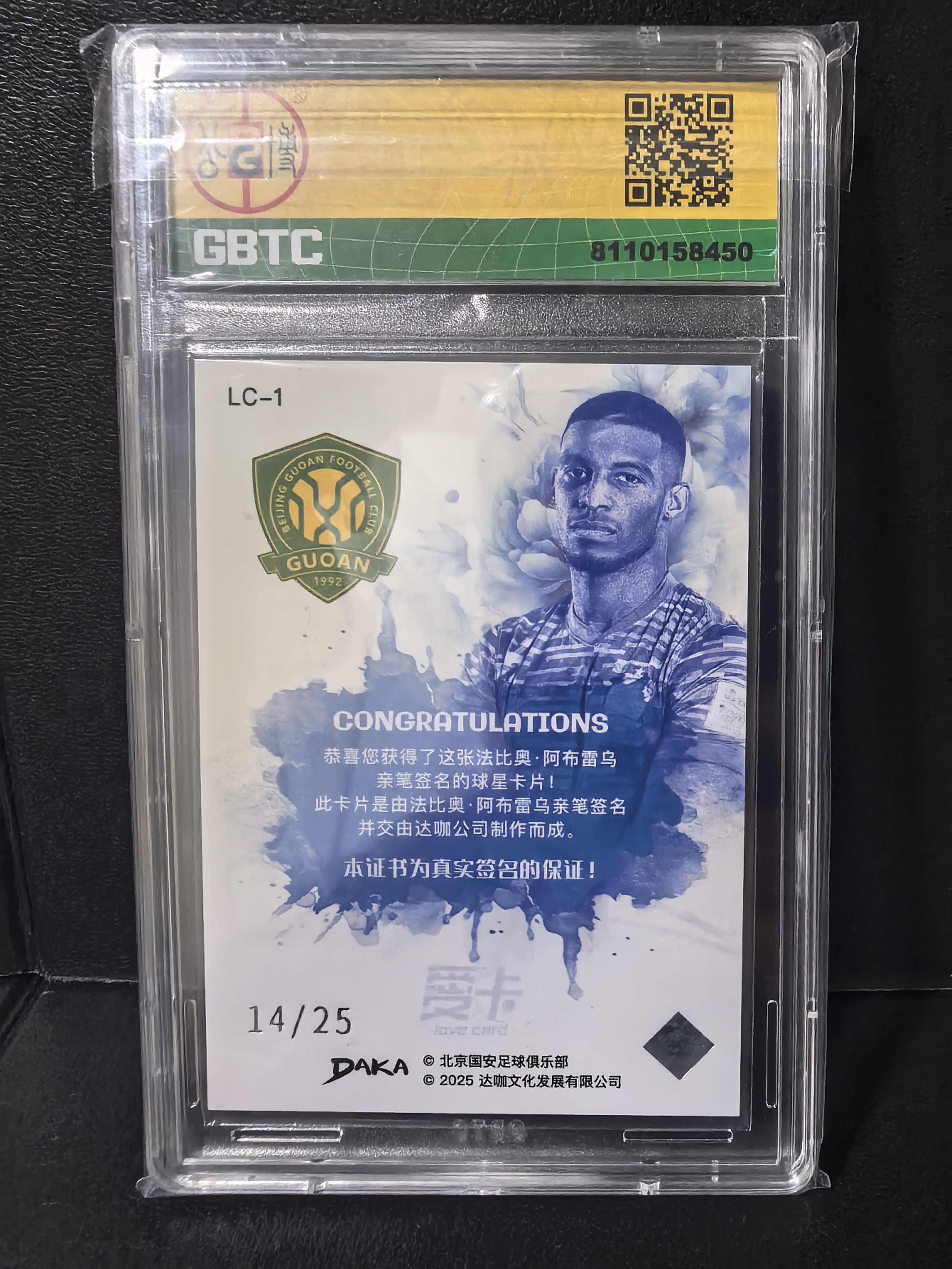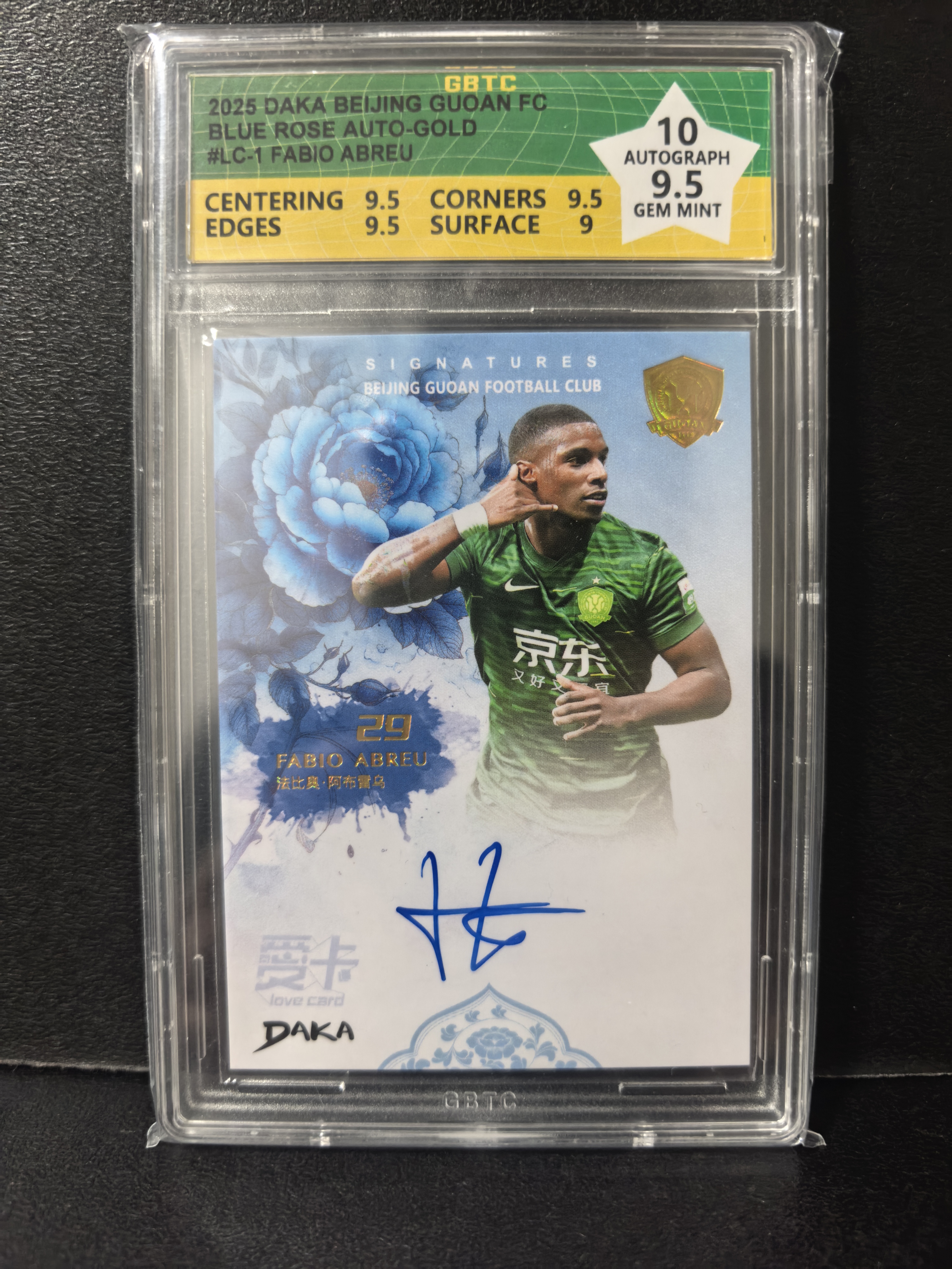 2025 DAKA BLUE ROSE AUTO-GOLD FABIO ABREU 2025 DAKA 北京国安队盒 签字 达咖 14/25编 法比奥 爱卡独占 青花瓷 超级大比例 卡签 中超金靴