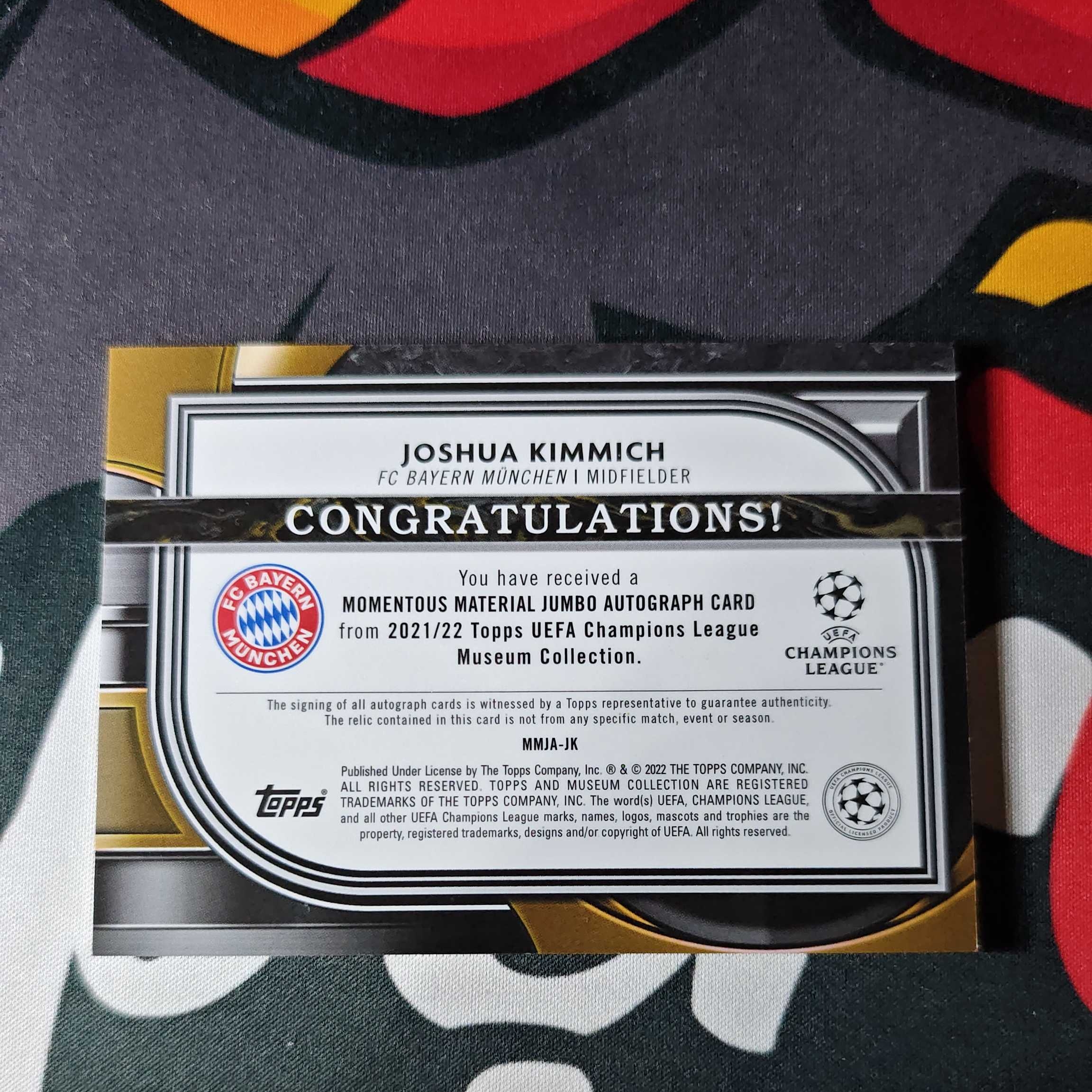 2021 Topps museum kimmich 博物馆系列 拜仁慕尼黑 约书亚 基米希 物料 签字 贴签 墨迹湛蓝 15/25编 卡品如图 暴力切割 顺丰寄付