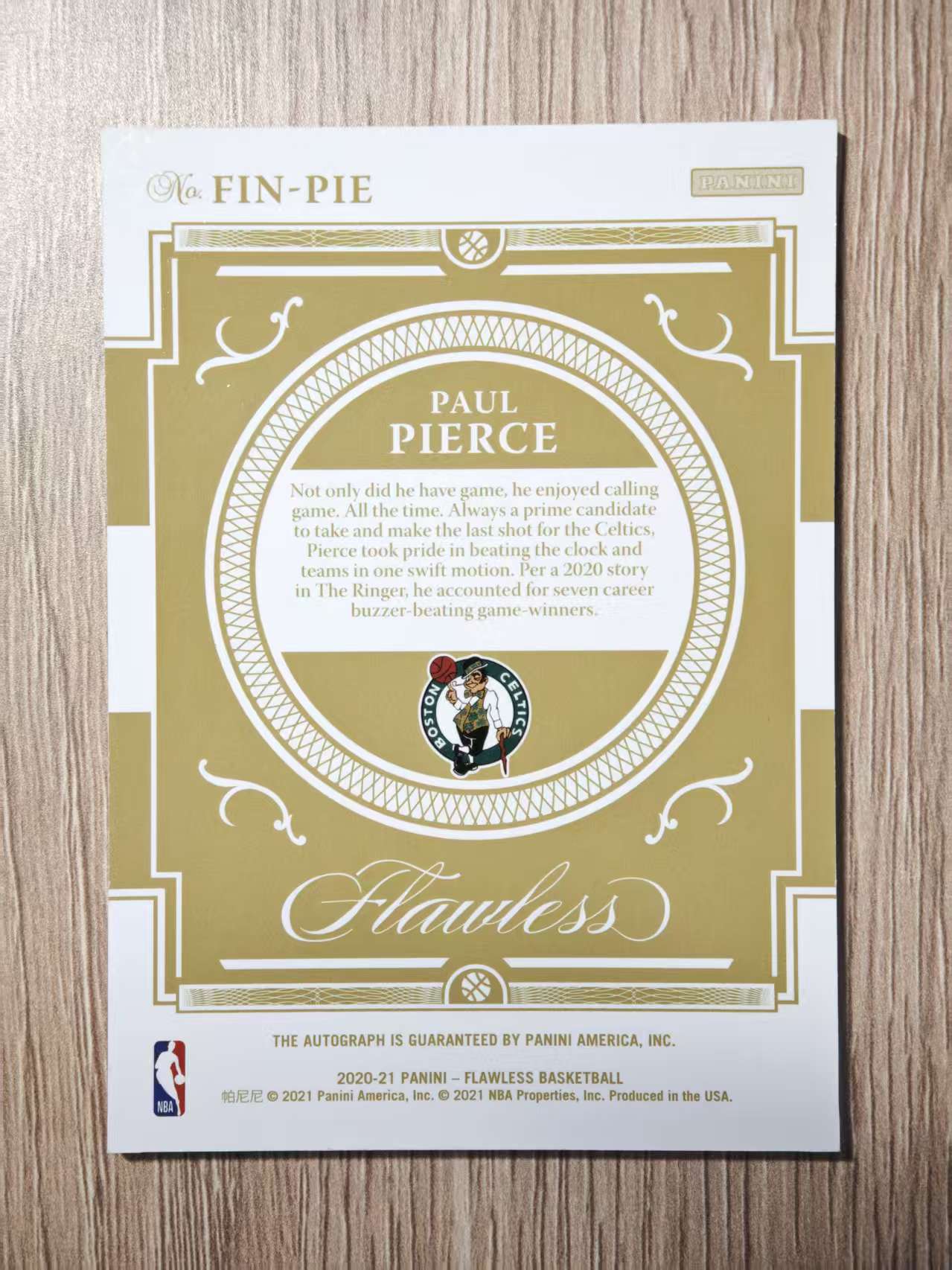 2020-21 Panini Flawless Paul Pierce 手提 凯尔特人 保罗 皮尔斯 真理 02/25编 签字 卡签 绝杀签