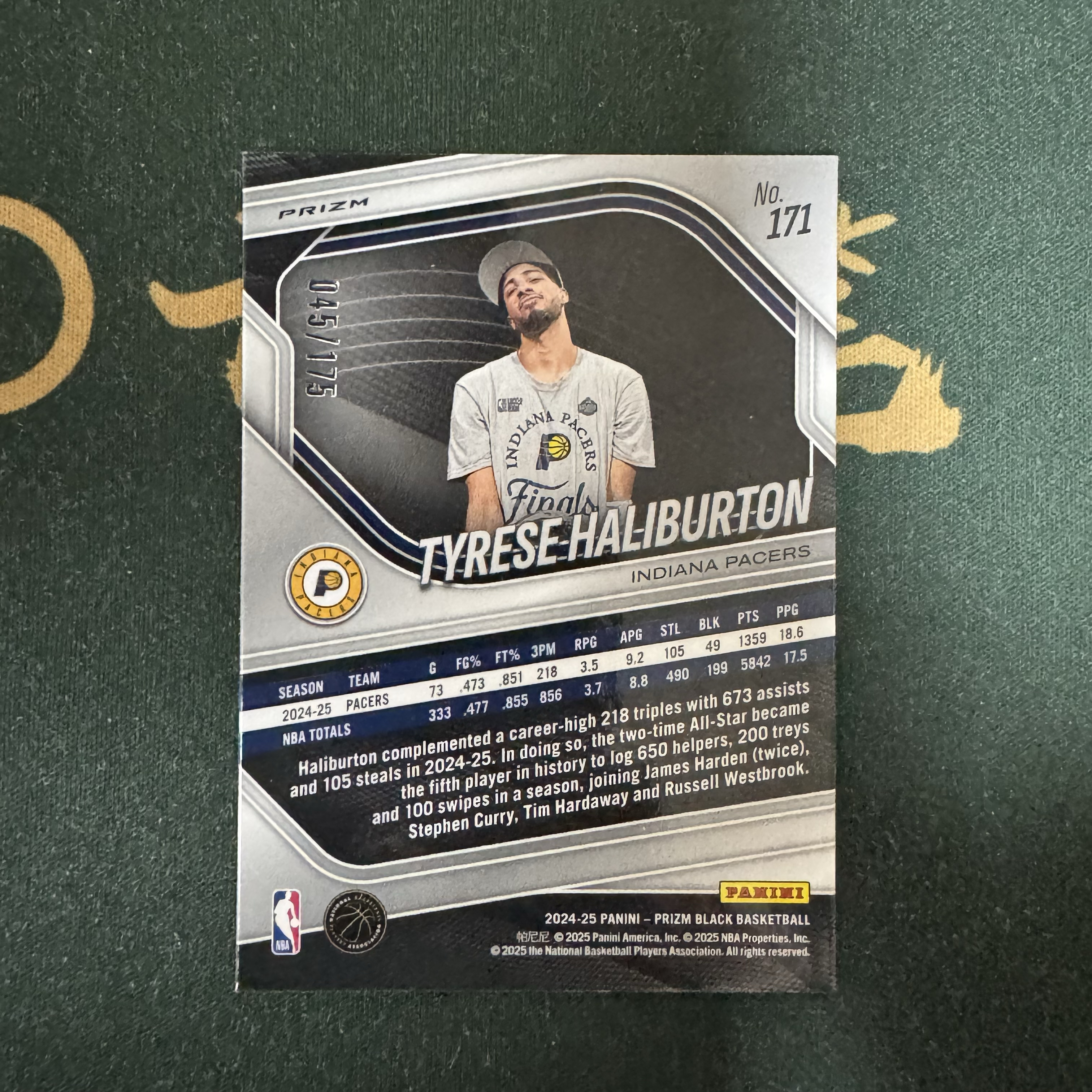 2024-25 Panini Prizm Tyrese Haliburton 【十三笔】 帕尼尼 泰雷塞 哈利伯顿 步行者 175编 白折 手捧杯 卡品如图(小迪)