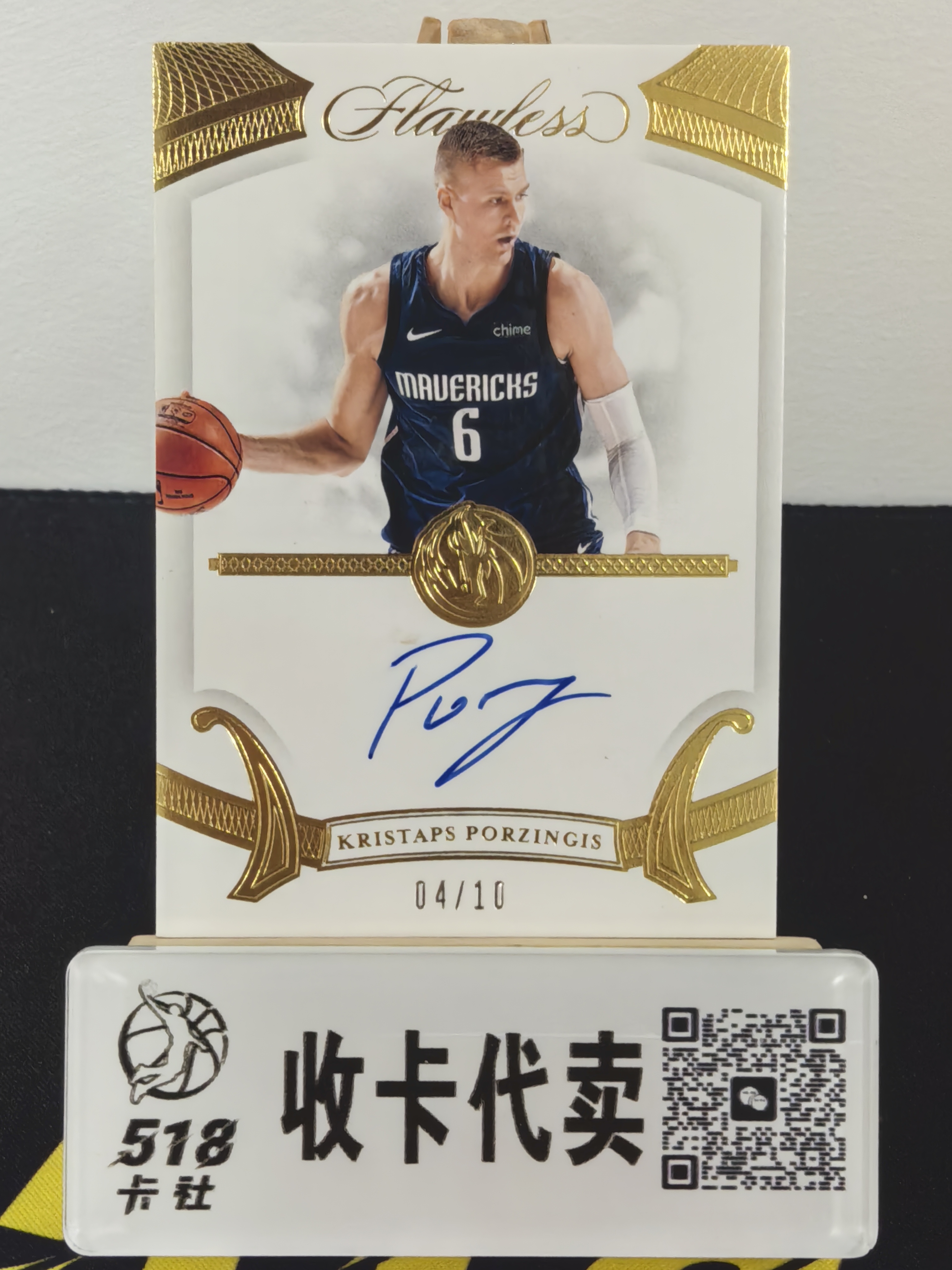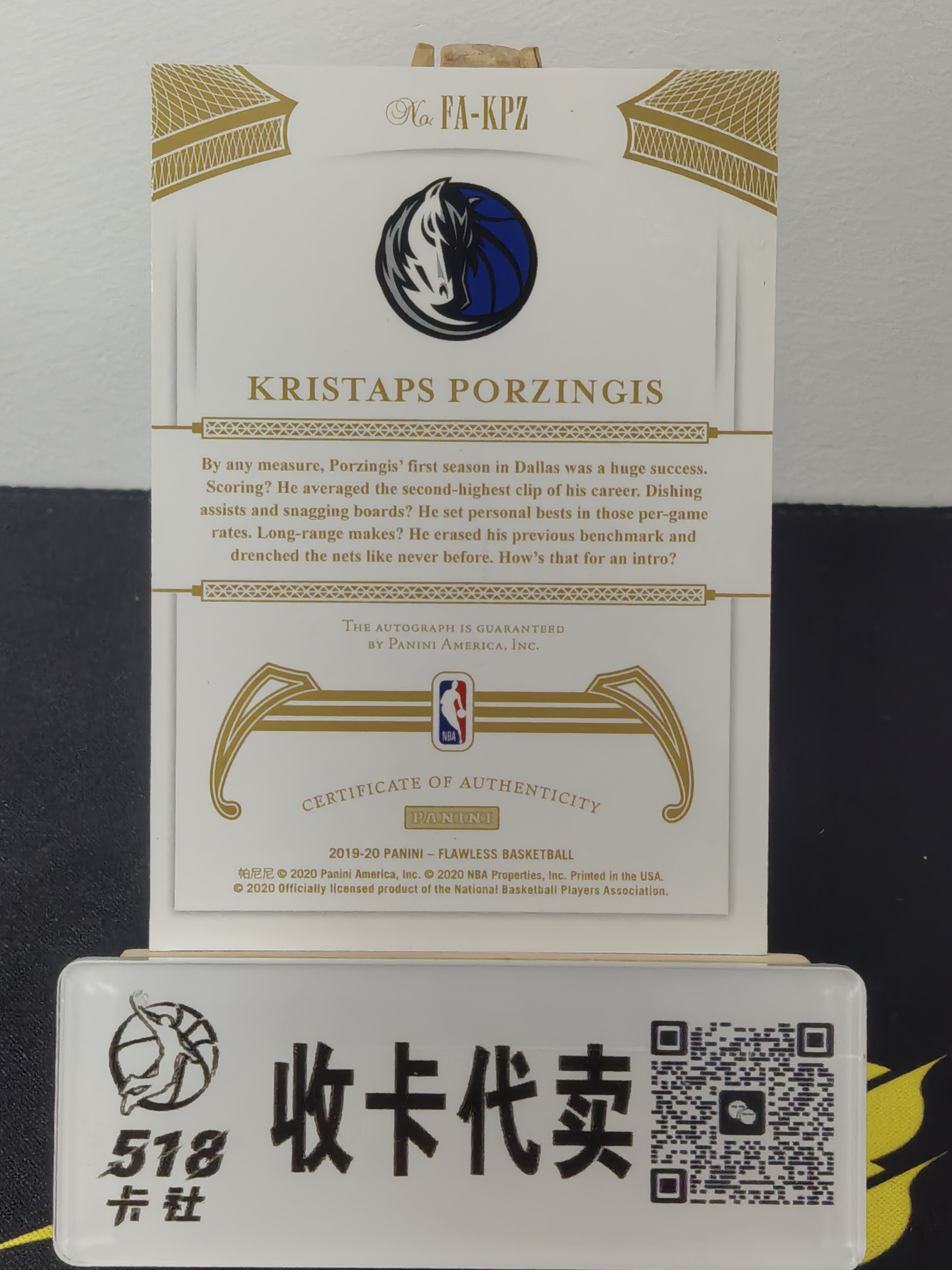 2019-20 Panini Flawless Kristaps Porzingis 【518卡社】手提 独行侠 尼克斯 独角兽 波神 波尔津吉斯 金版平行 /10编 FA签 卡签 签字 猪猪来袭