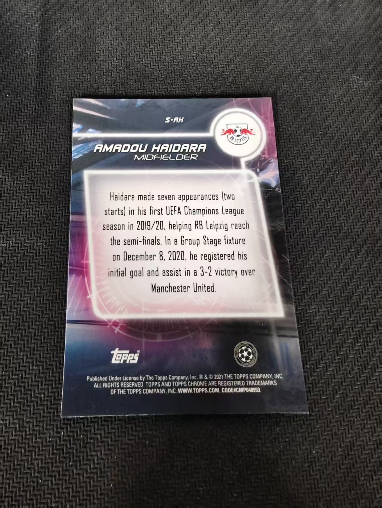 【可合并,不累计】2021 Topps Chrome Amadou Haidara RC 莱比锡 阿马杜 海达拉 新秀 欧冠 银折 划痕 边角瑕疵