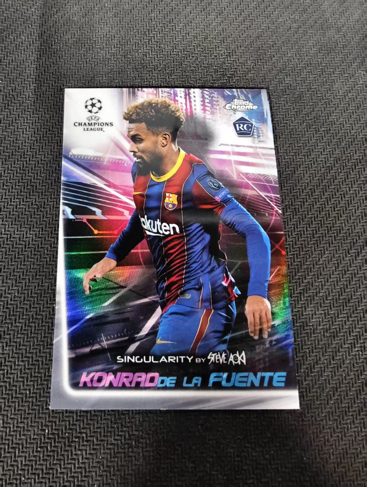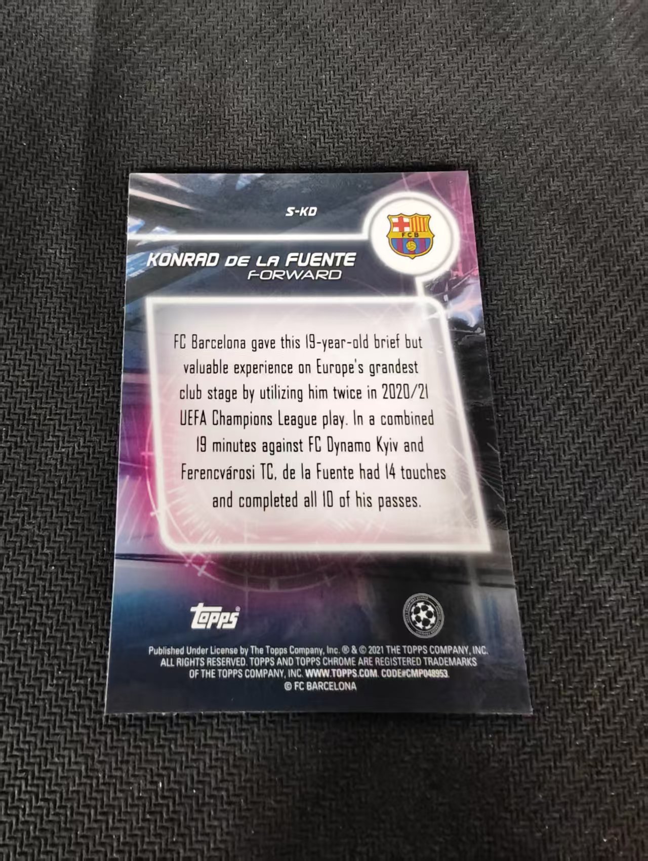 【可合并,不累计】2021 Topps Chrome Konrad De la Fuente RC 德拉富恩特 新秀 巴萨 欧冠 银折 划痕 边角瑕疵