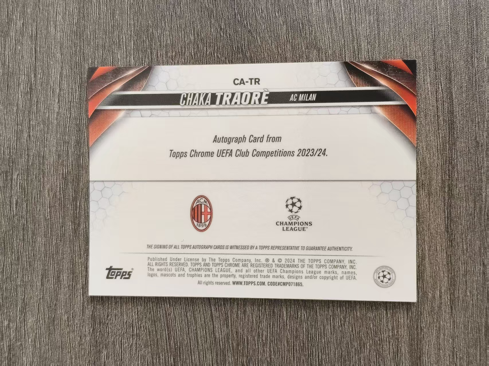 2023-24 Topps Chrome Chaka Traoré RC 特劳雷 欧冠tc 新秀签字 AC米兰天才 法国🇫🇷新星 值得收藏 未来大涨 飞