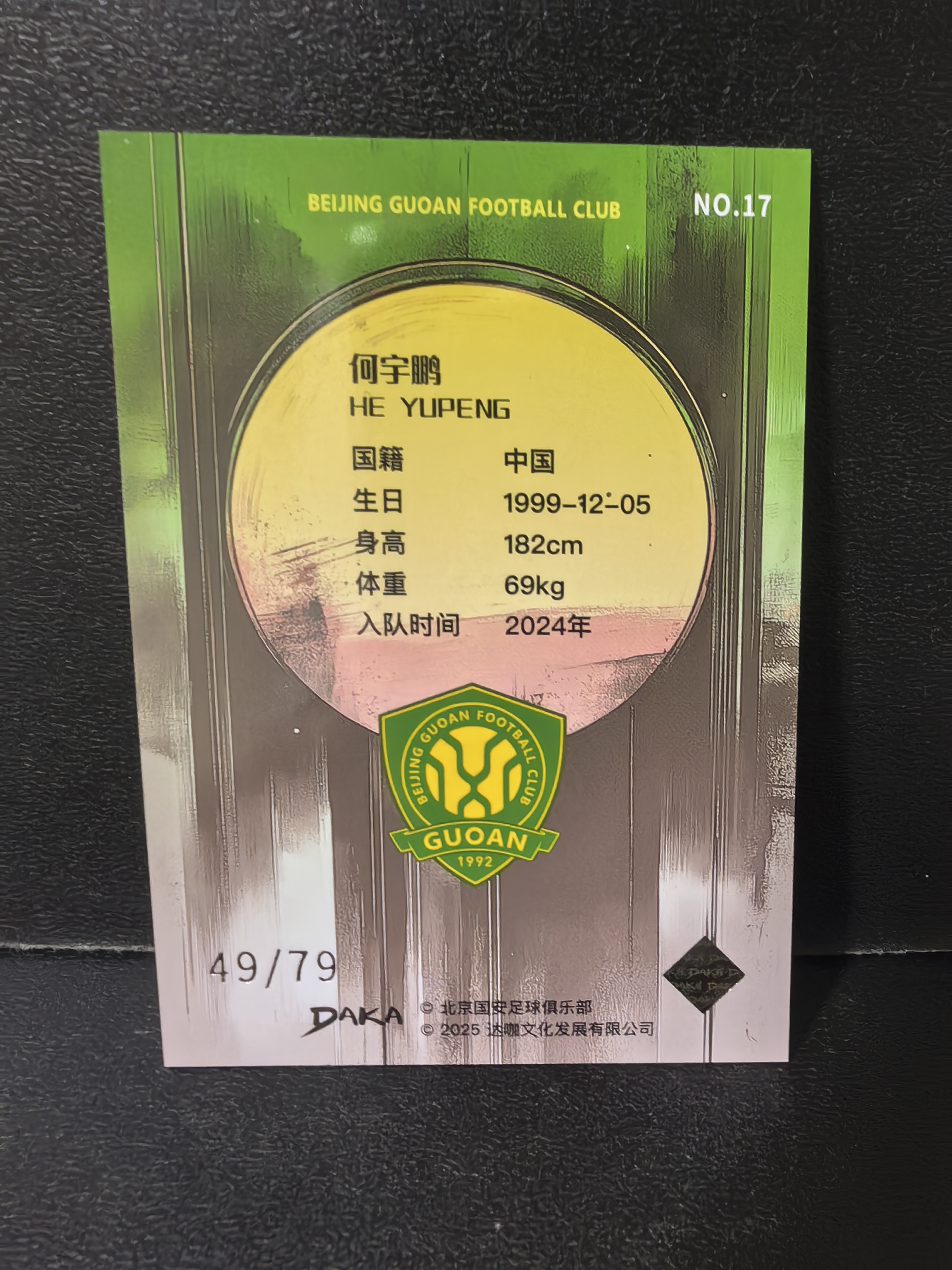 2025 DAKA 北京国安 何宇鹏 2025 Daka Beijing Guoan 达咖 北京国安队盒 He Yupeng Base 银折 折射 79编