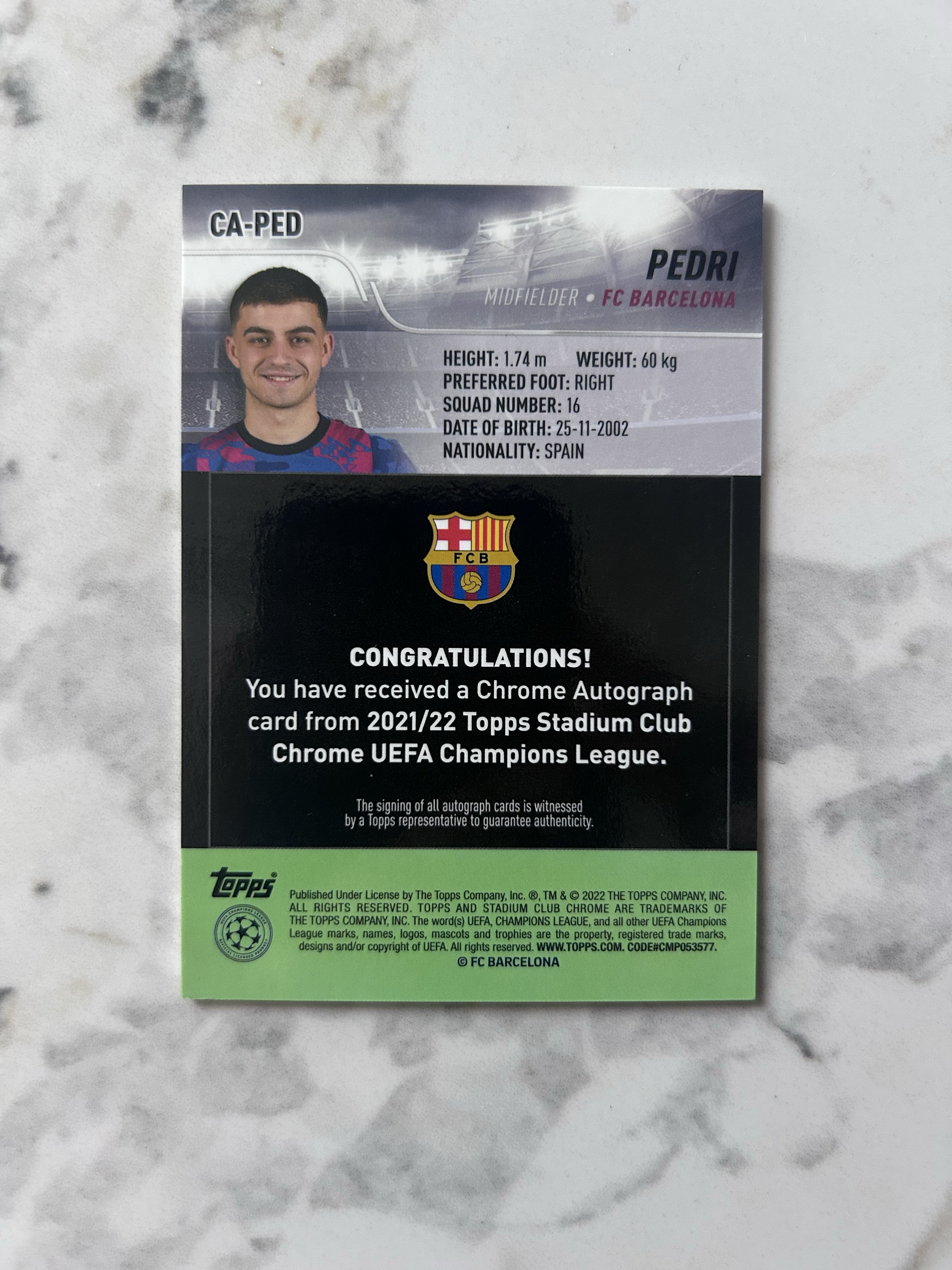 2021-22 Topps Stadium Club Chrome Pedri 体育馆 西甲巴塞罗那 佩德里 正装照 银折 签字 墨迹如图 大热 稀有 实卡精美 卡品如图 凑套收藏必入