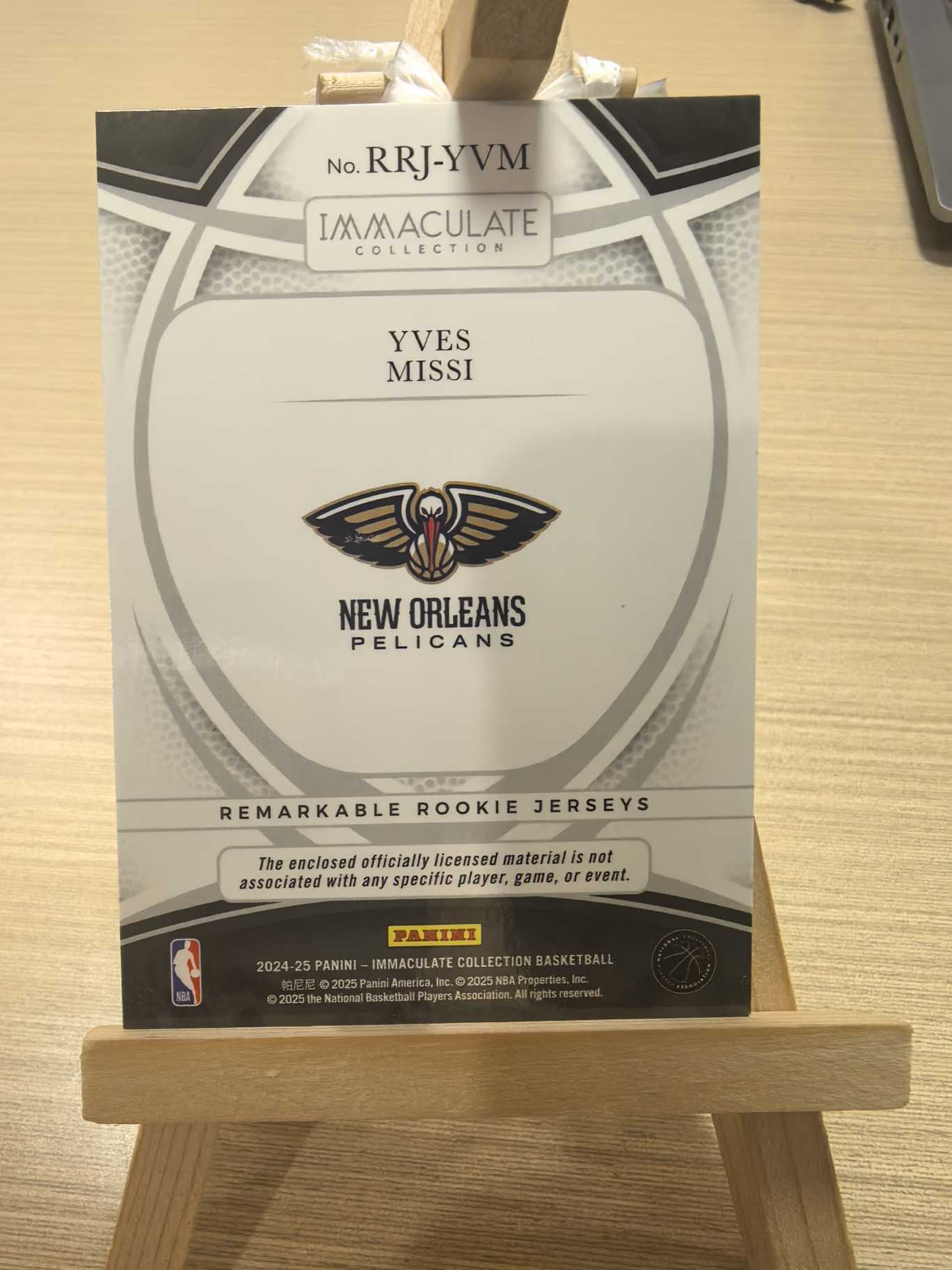 2024-25 Panini Immaculate Yves Missi RC 爱咪咪/75编 新秀 大窗暴力球衣切割 物料 伊夫 米西 鹈鹕 瑕疵如图