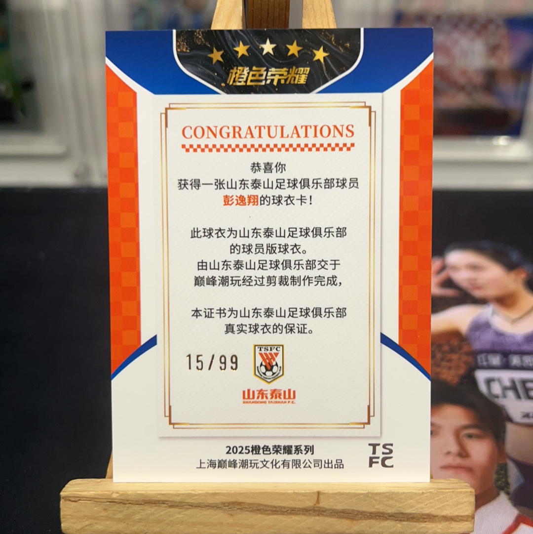 2025 巅峰潮玩 橙色荣耀 彭逸翔 【耳朵卡社】巅峰潮玩 2025 山东泰山队盒 橙色荣耀 铜折 物料 球衣卡 低编 15/99编 彭逸翔 ling