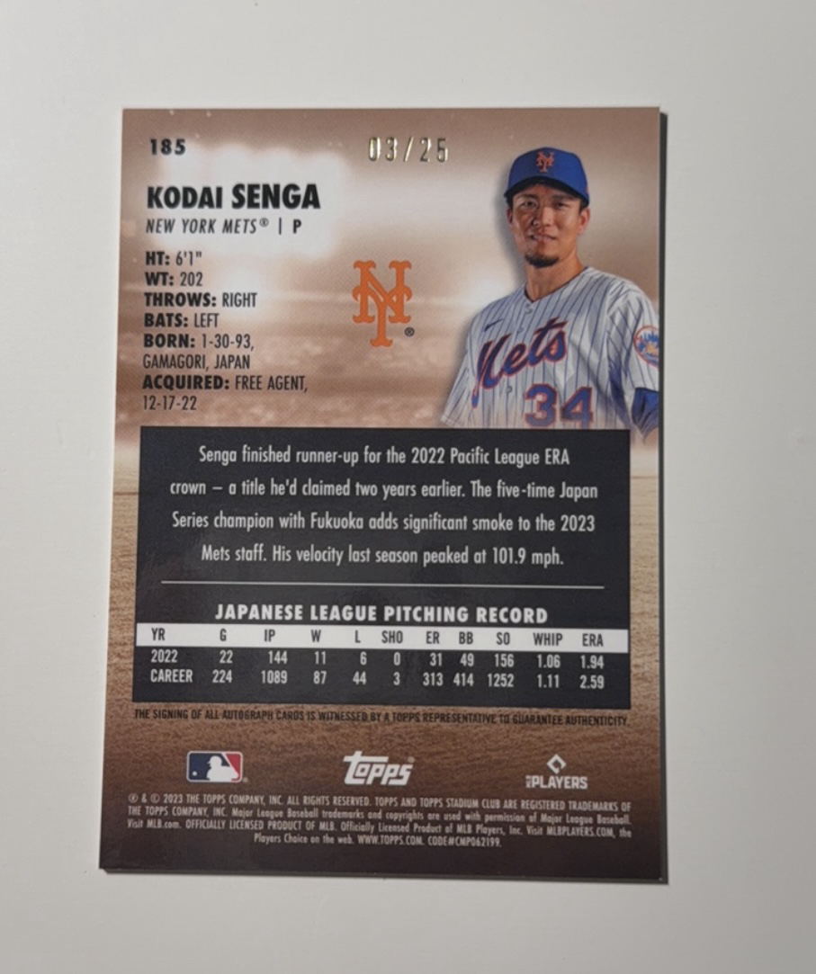 2025 Topps 【锡安代卖】 累计照常 棒球mlb stadium Kodai Senga RC 千贺幌大 新秀 背号签 chrome 25编 签字 收藏必备 卡品如图 烧麦
