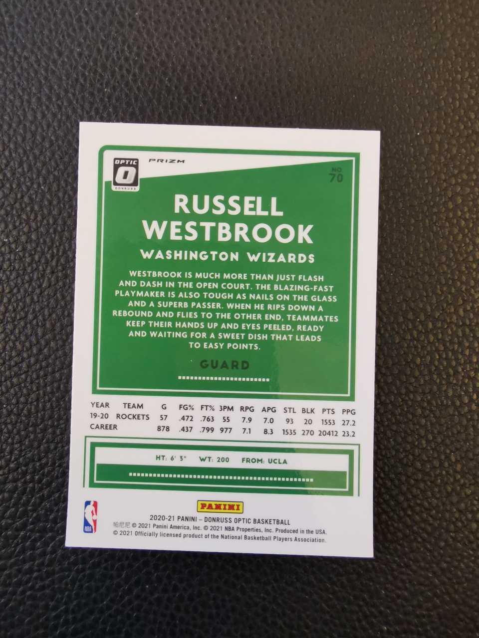 【金矿拍卖】2020-21 donruss 杜蕾斯 optic 奇才选图 威少 拉塞尔威斯布鲁克Russell westbrook 银折折射 历史三双王 印痕线 lc