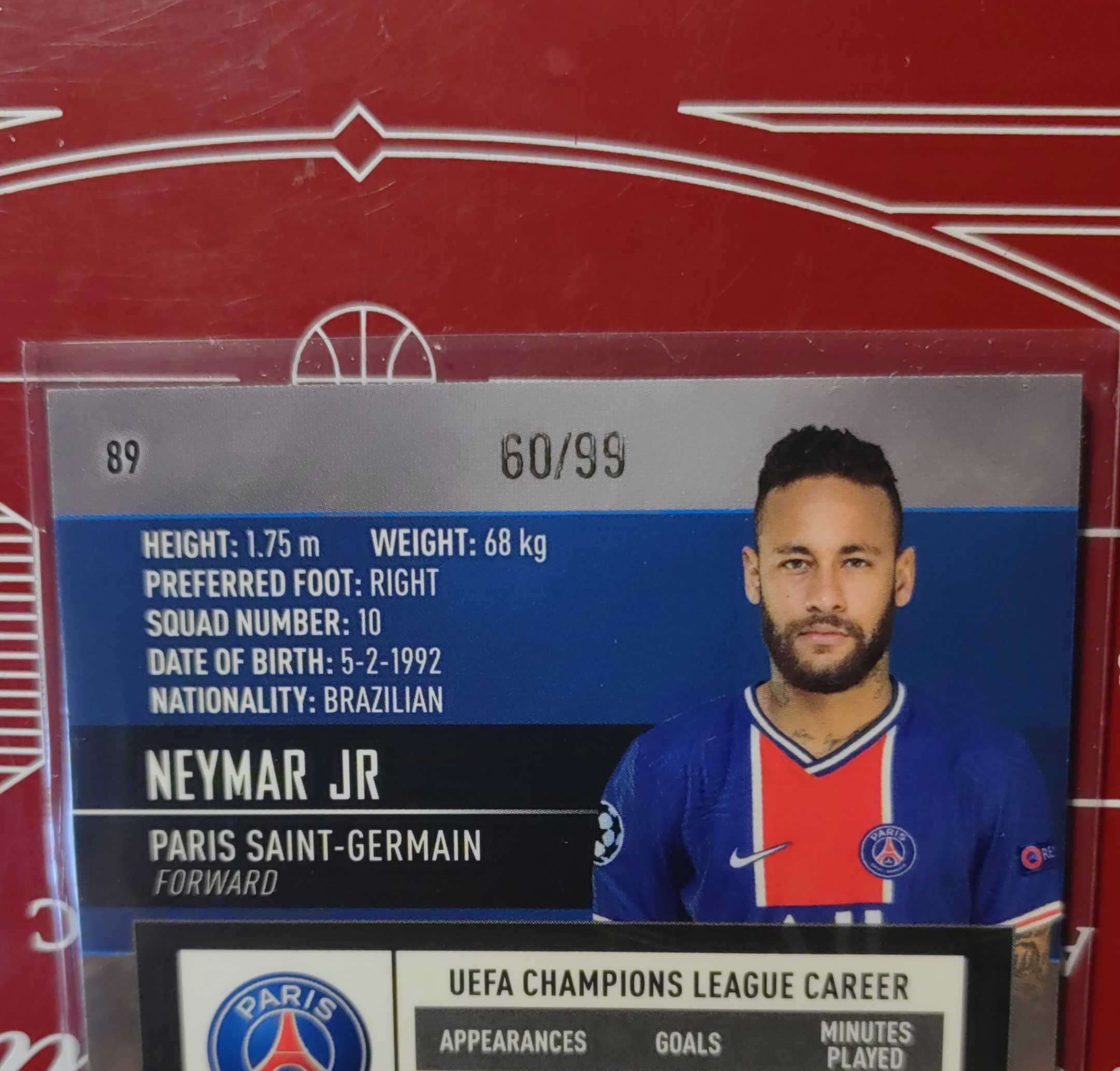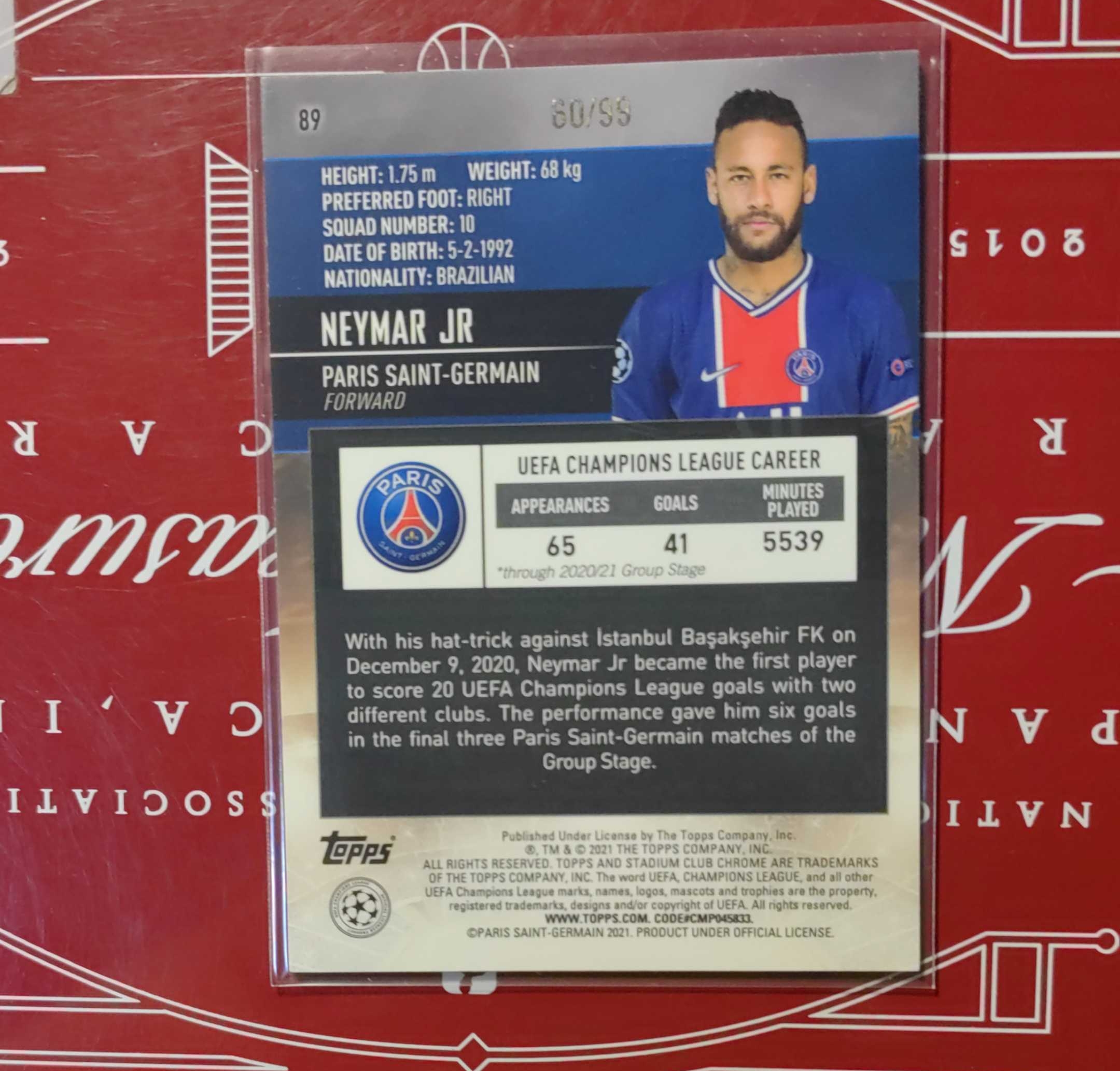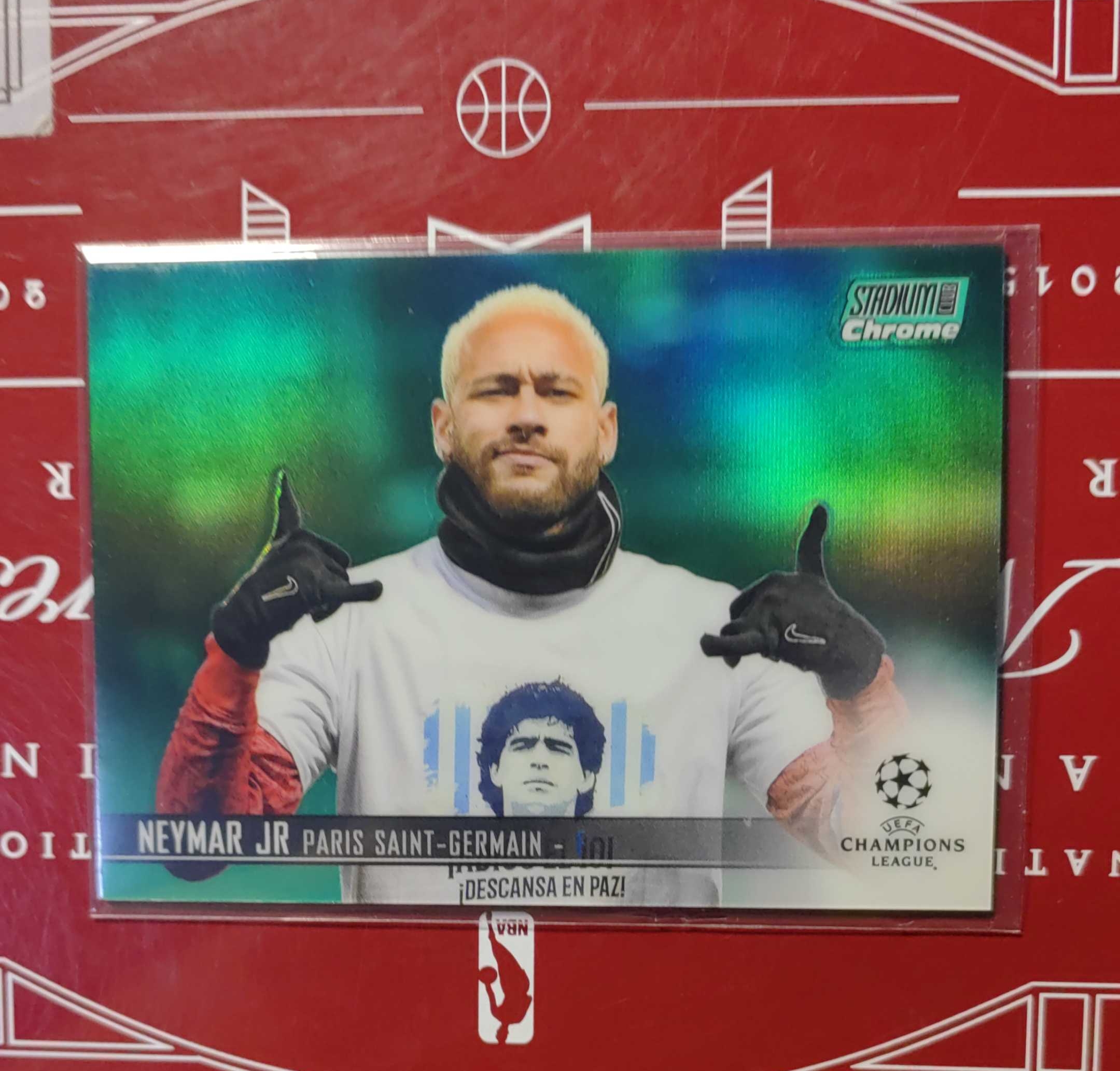 2021 Topps Stadium Club Chrome Neymar Jr. 内马尔 巴西队 巴黎圣日耳曼 巴塞罗那 进球庆祝 纪念马拉多纳 造型 梅西 姆巴佩队友 世界杯冠军 绿折 60/99