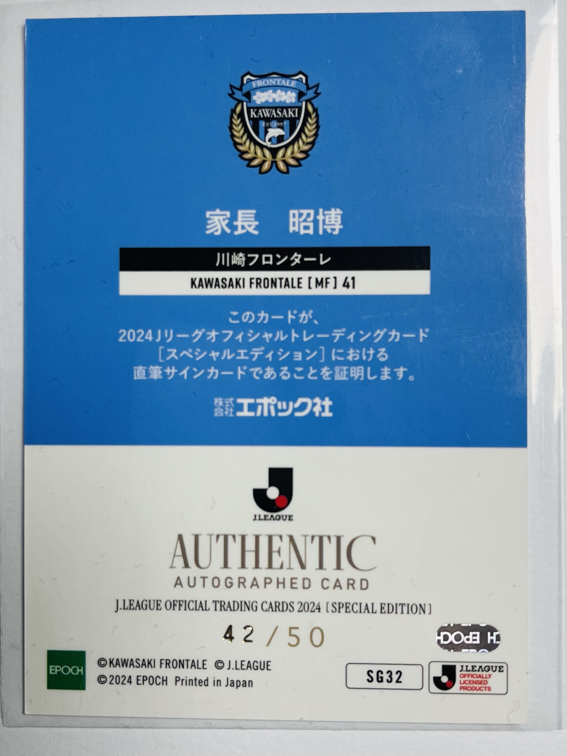 2024 Epoch J League Akihiro IENAGA 日本 J联赛 川崎前锋 日本 国脚 家长昭博 42/50编 编 亲笔 签字 卡 签名卡 球星卡 原大阪钢巴 卡品极为完美 稀缺好货
