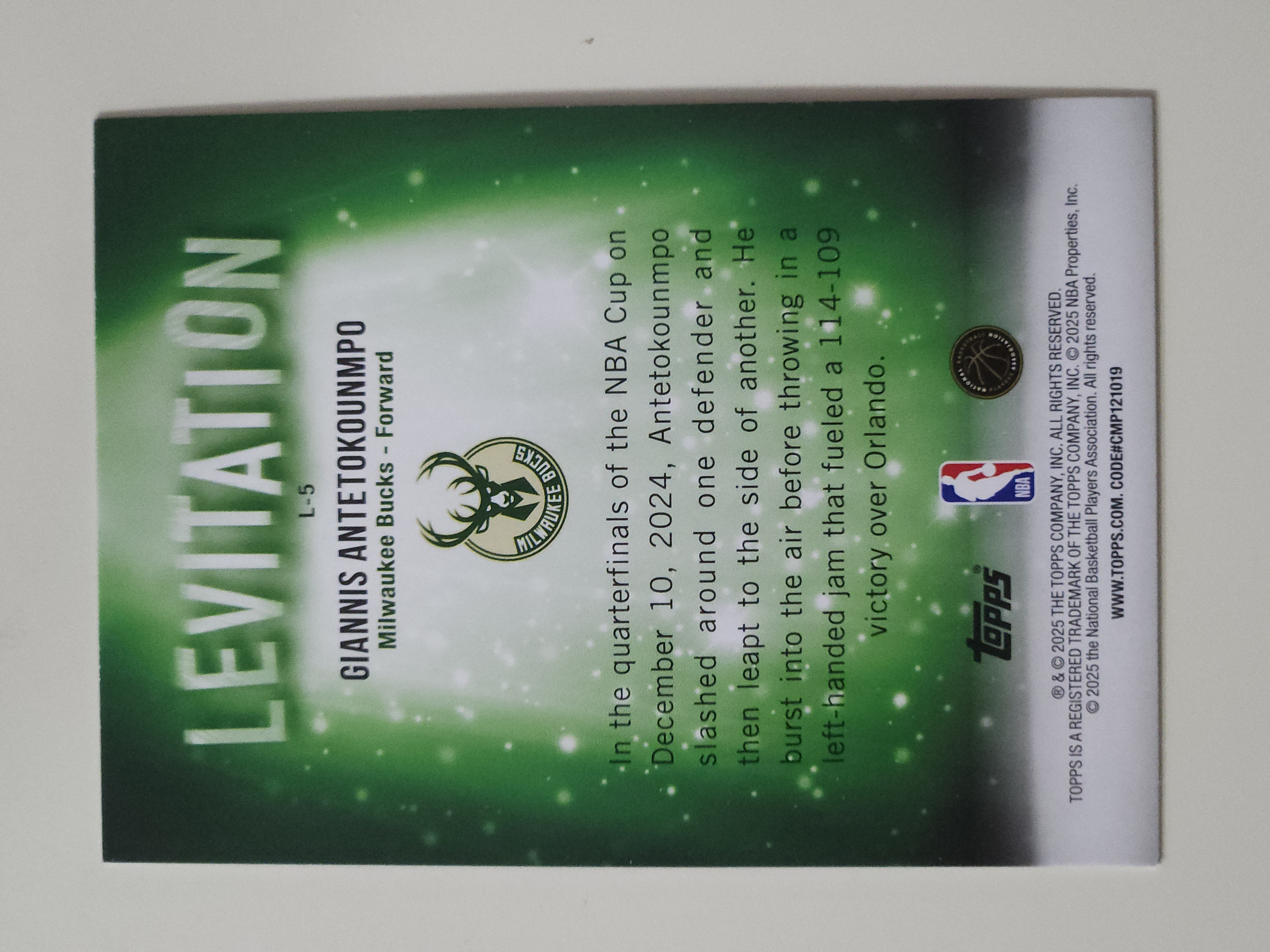 2025 Topps Basketball Giannis Antetokounmpo 【流星代拍】 扬尼斯 阿德托昆博 字母哥 Levitation 悬浮 特卡 折射 雄鹿 队徽 卡品如图 帅比 B